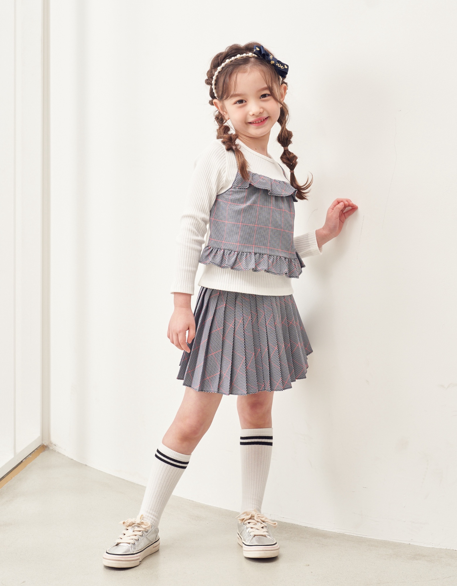 글렌 체크 주름 SK