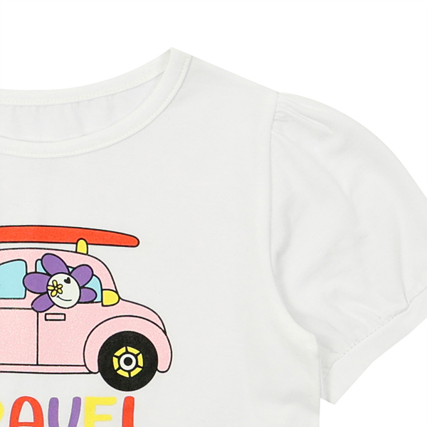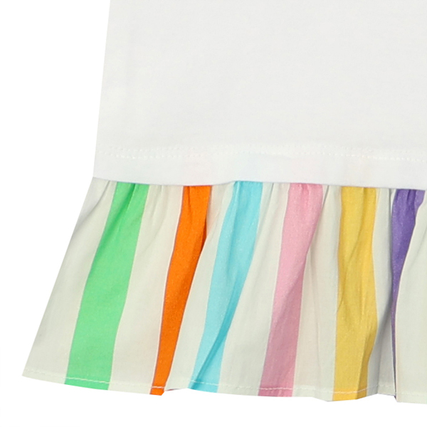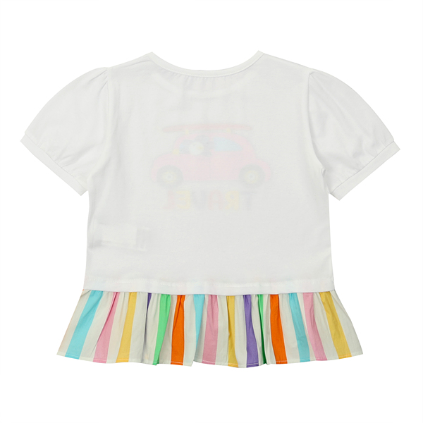사랑스러운 컬러감의 우븐이 밑단이 배색되어있는 화이트 티로 귀여운 스타일의 아이템이다