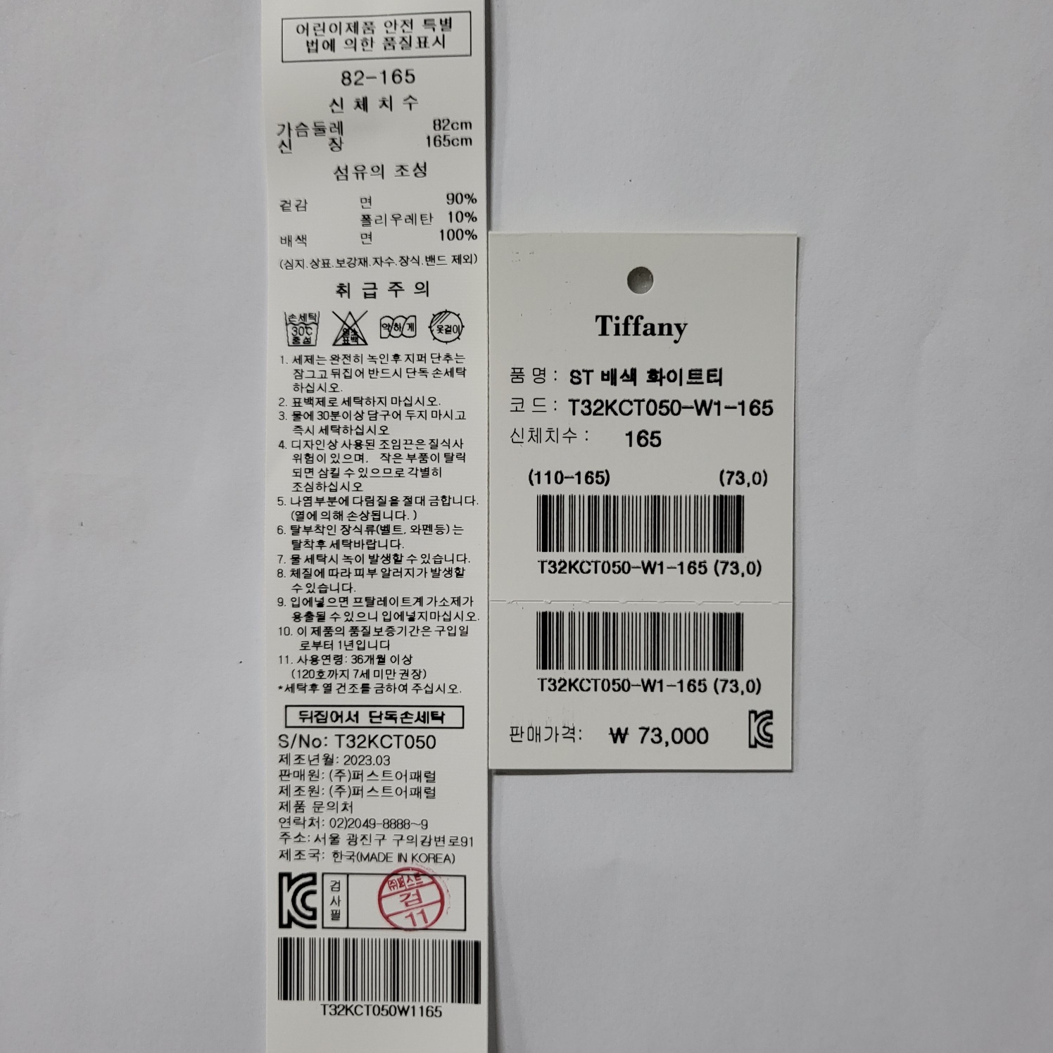 겉감 : 면 90 폴리우레탄 10 배색 면 100 -
