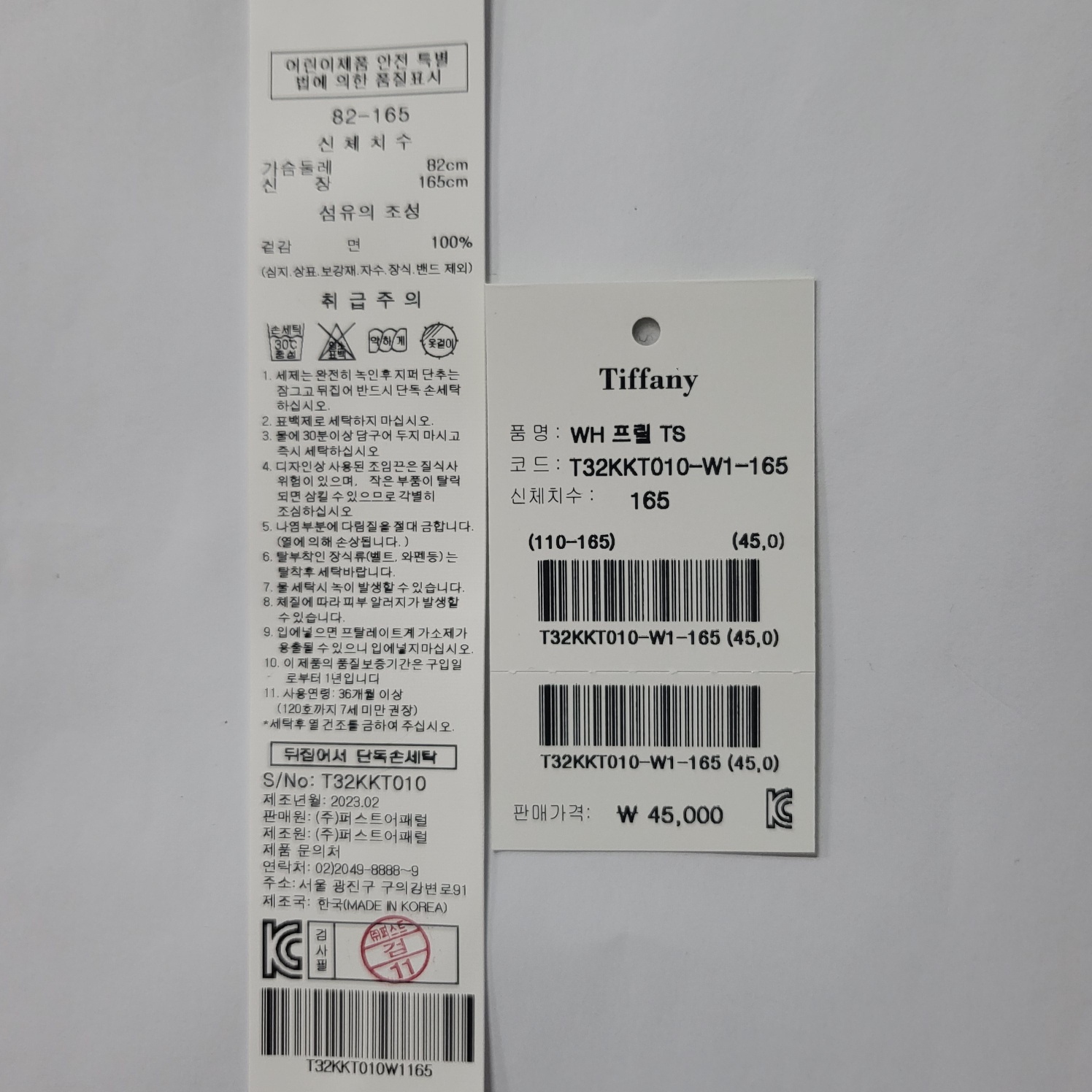 겉감 : 면 100 -
