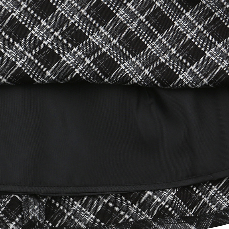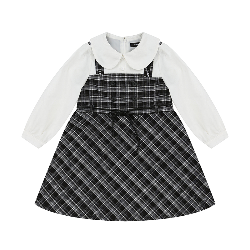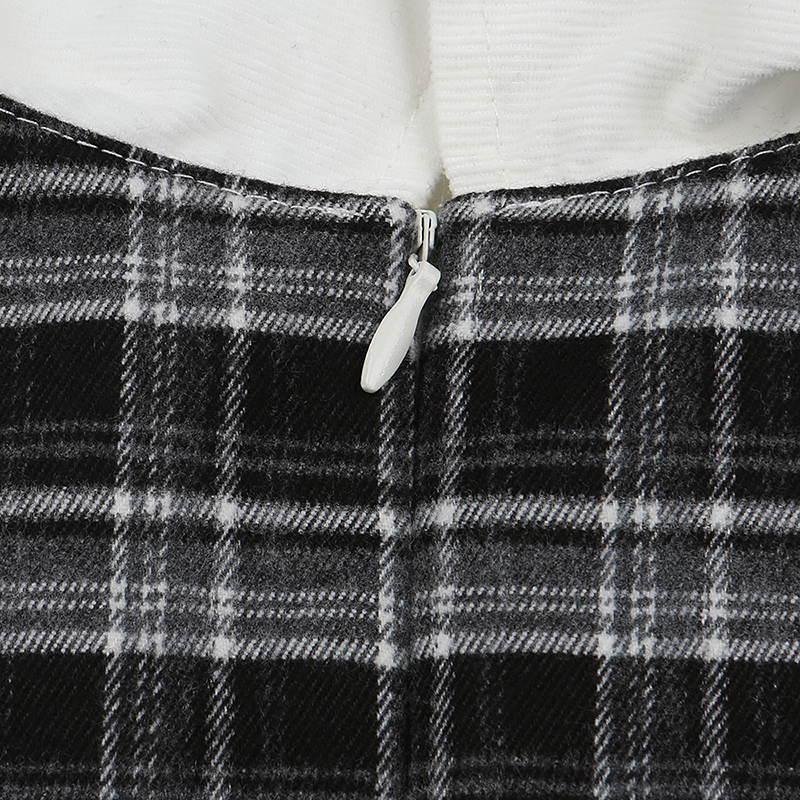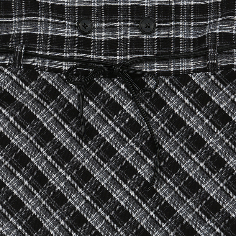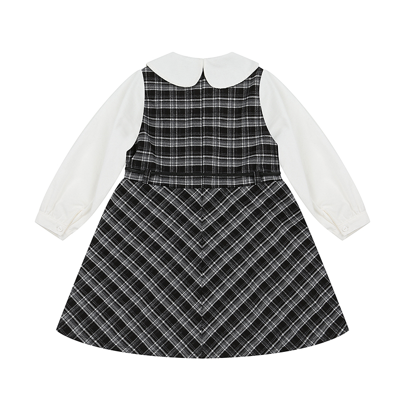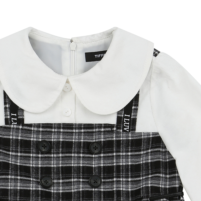 아이보리 코드료이 블라우스에 체크배색이 더해진 레이어드디자인의 원피스로 탈부착 벨트가 같이 구성되어 있는 아이템입니다.