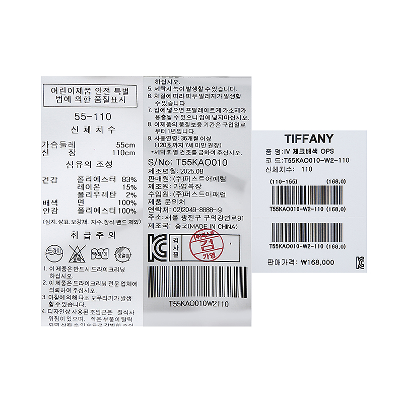 겉감 : 폴리에스터 83 레이온 15 폴리우레탄 2 배색 면 100 안감 폴리에스터 100 -