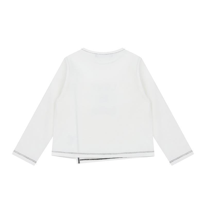 스판 소재 기본티 라인에 옆선 사선 라인에 전체 배색 콤비 스티치로 포인트를 준 티셔츠입니다. 앞에 별로고 프린트로 포인트를 준 스타일입니다.