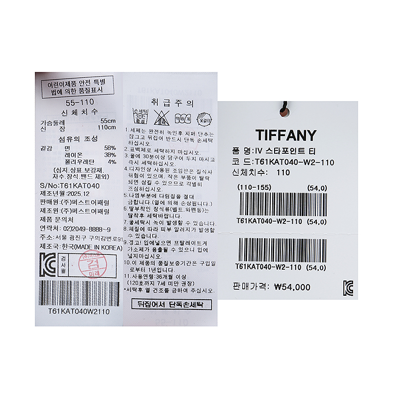 겉감 : 면 58 레이온 38 폴리우레탄 4 -