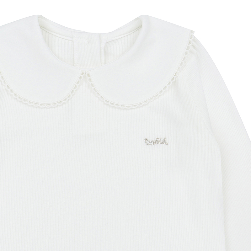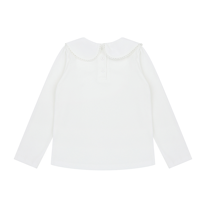 깔끔한 아이보리 카라티로 카라끝에 스칼럽 레이스가 한층더 멋스러움을 더해주며 스커트에 같이코디하시면 좋은 아이템입니다.