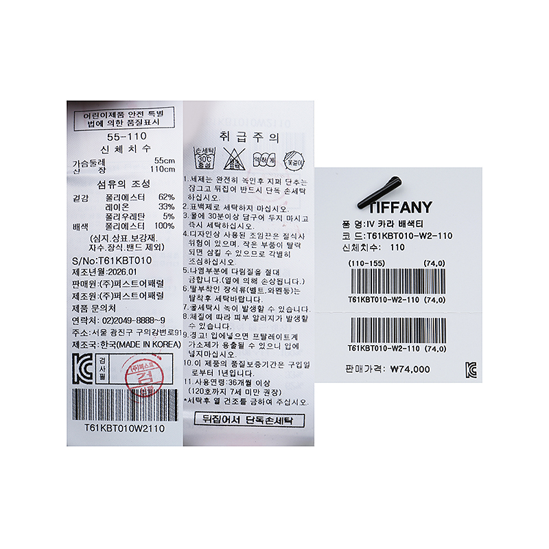 겉감 : 폴리에스터 62 레이온 33 폴리우레탄 5 배색 폴리에스터 100 -