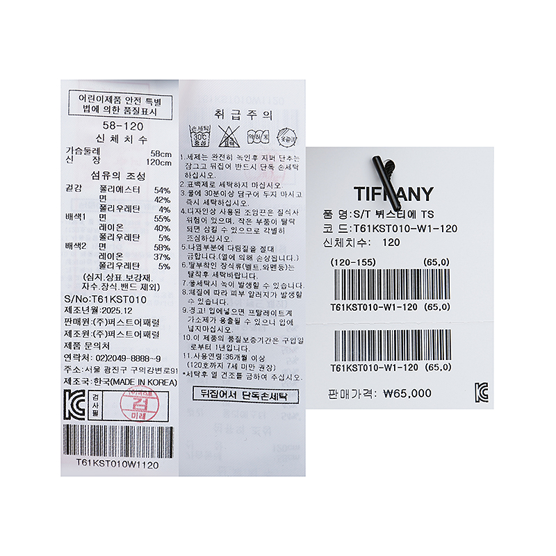 겉감 : 폴리에스터 54 면 42 폴리우레탄 4 배색 1 면 55 레이온 40 폴리우레탄 5 배색 2 면 58 레이온 37 폴리우레탄 5 -