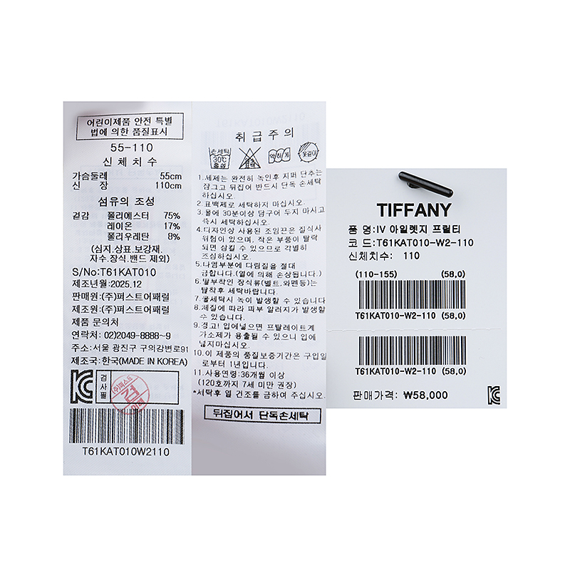 겉감 : 폴리에스터 75 레이온 17 폴리우레탄 8 -