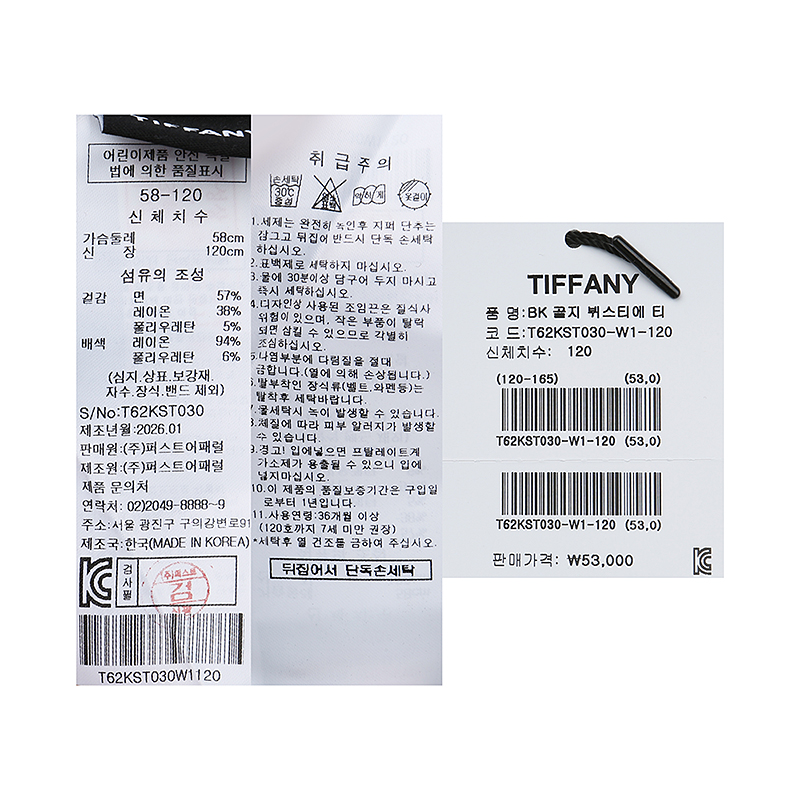 겉감 : 면 57 레이온 38 폴리우레탄 5 배색 레이온 94 폴리우레탄 6