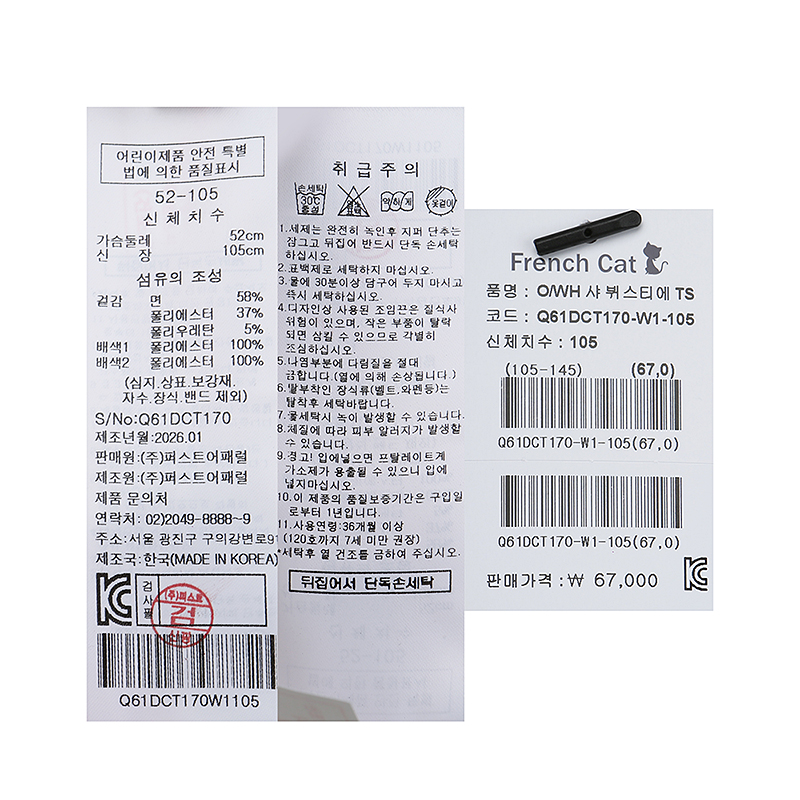 겉감 면58 폴리에스터37 폴리우레탄5배색1 폴리에스터100배색2 폴리에스터100 -