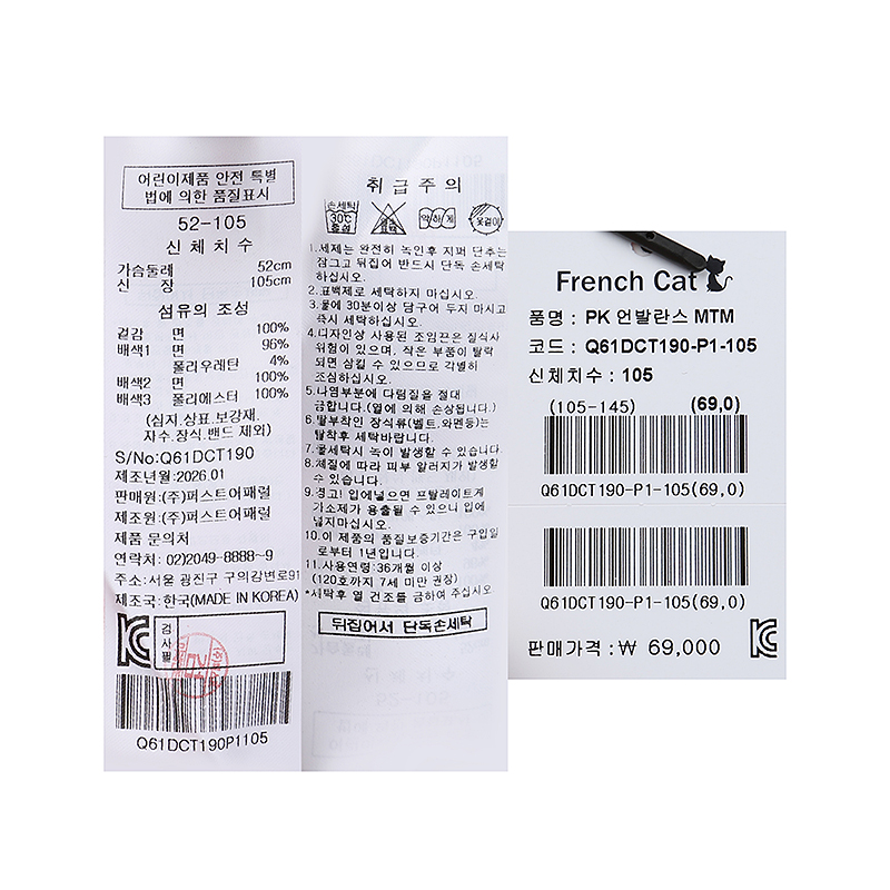 겉감 면100배색1 면96 폴리우레탄4배색2 면100배색3 폴리에스터100 -