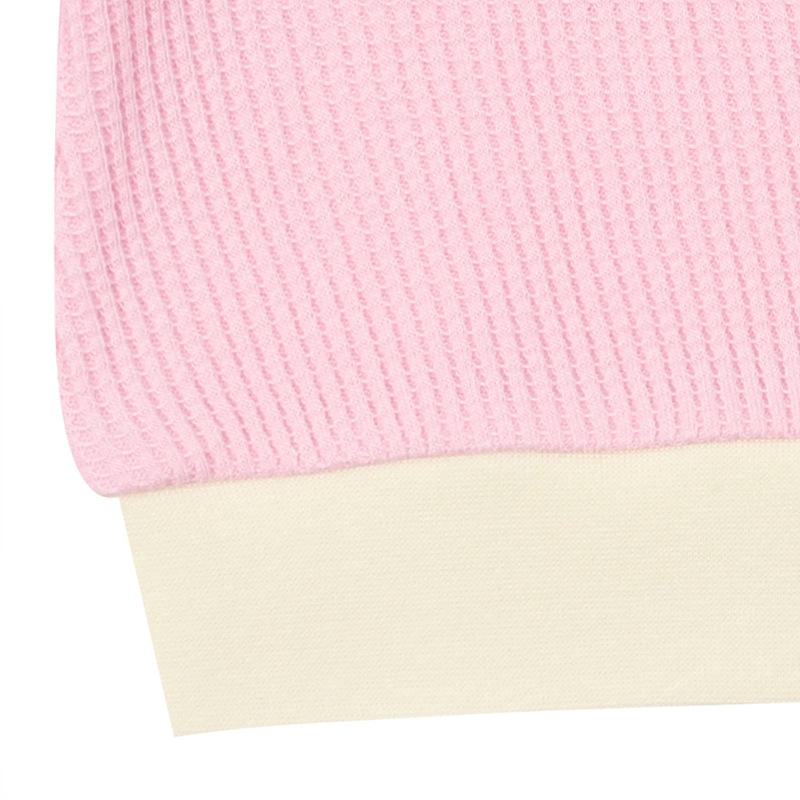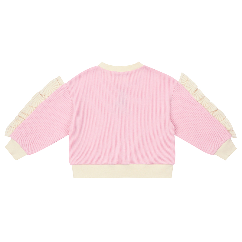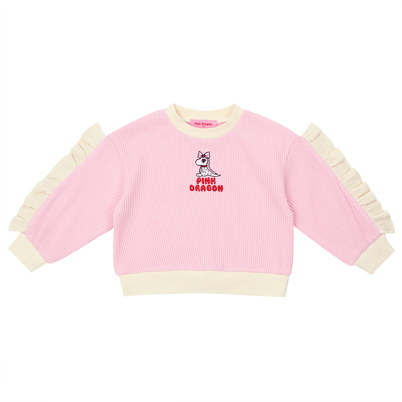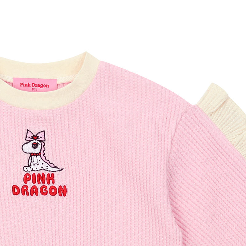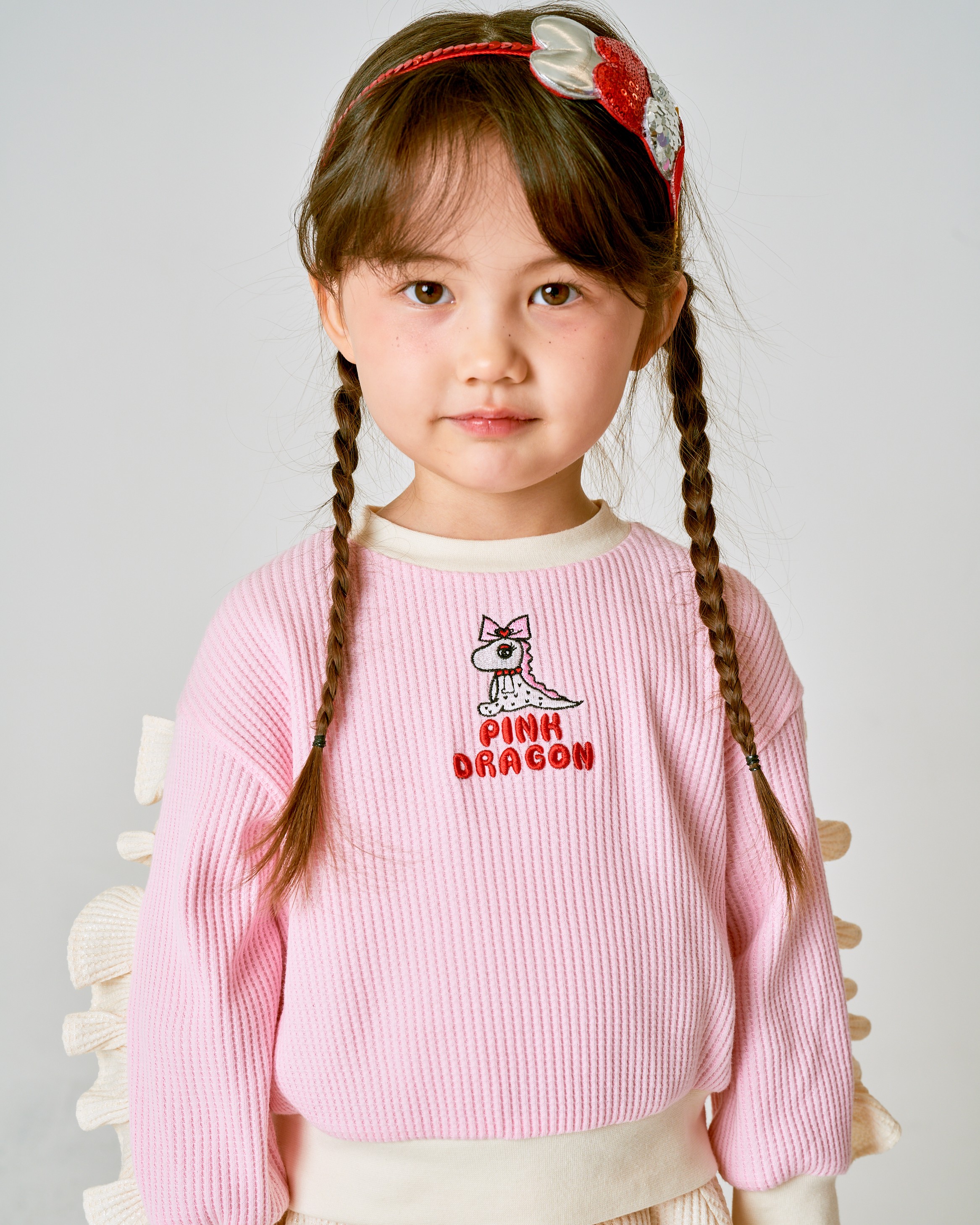 -소매에 펄감이 들어간 와플지를 사용하여 반짝반짝 사랑스럽고 앞판 핑크드래곤 자수로 귀여워요.