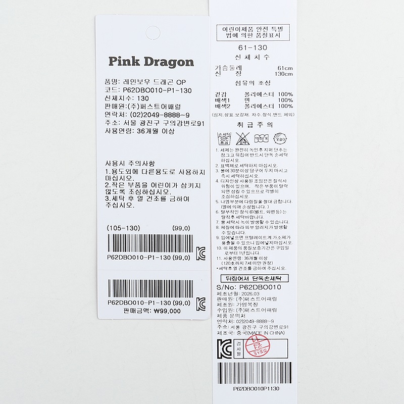 겉감 : 폴리에스터 100 배색 1 면 100 배색 2 폴리에스터 100 -