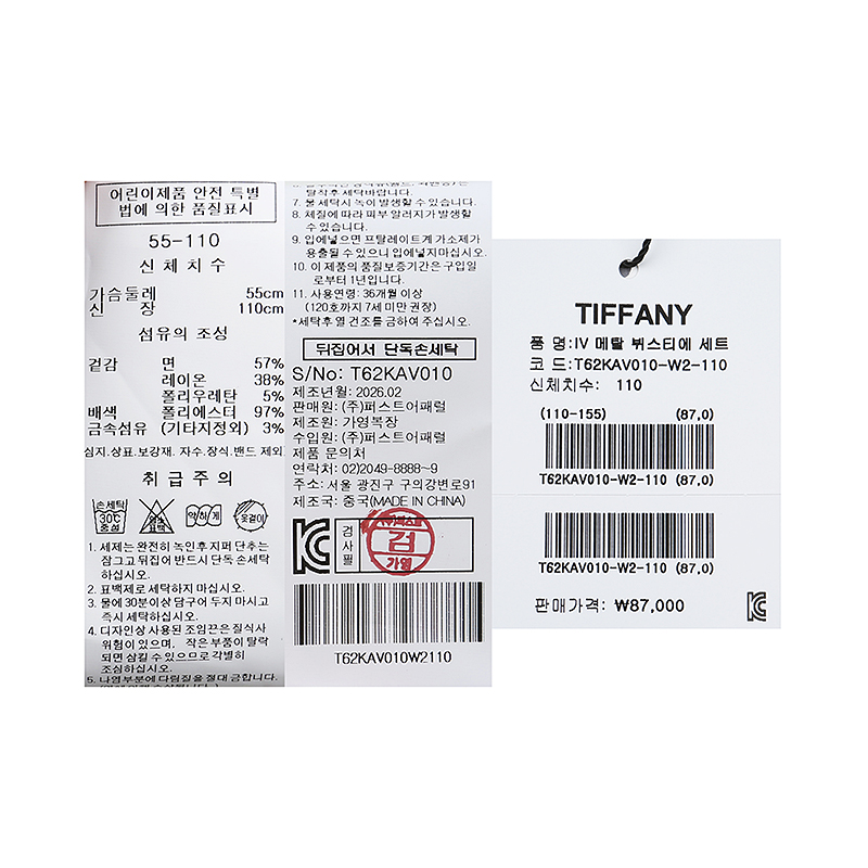 겉감 : 면 57 레이온 38 폴리우레탄 5 배색 폴리에스터 97 금속섬유(기타지정외 ) 3 -