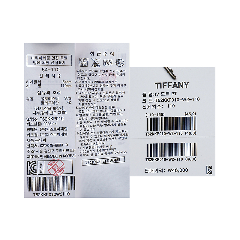 겉감 : 폴리에스터 98 폴리우레탄 2 -