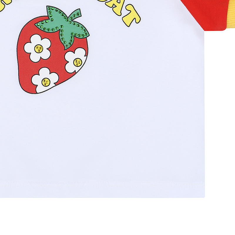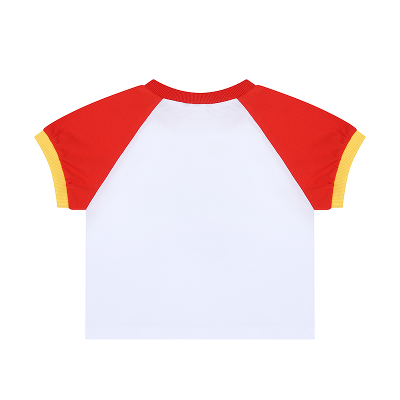 -화이트 몸판에 레드 소매와 옐로우 시보리로 포인트를 준 배색 나그랑 티셔츠