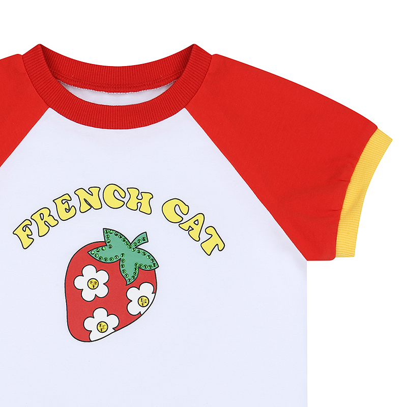 -중앙에 커다란 딸기 일러스트와 함께 "FRENCH CAT" 영문 레터링이 옐로우 컬러로 귀엽게 들어가 있는 제품