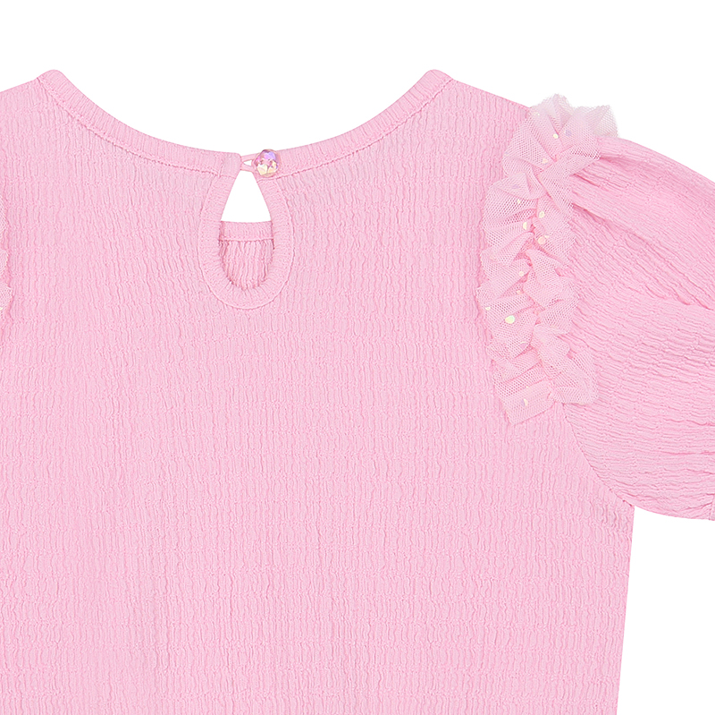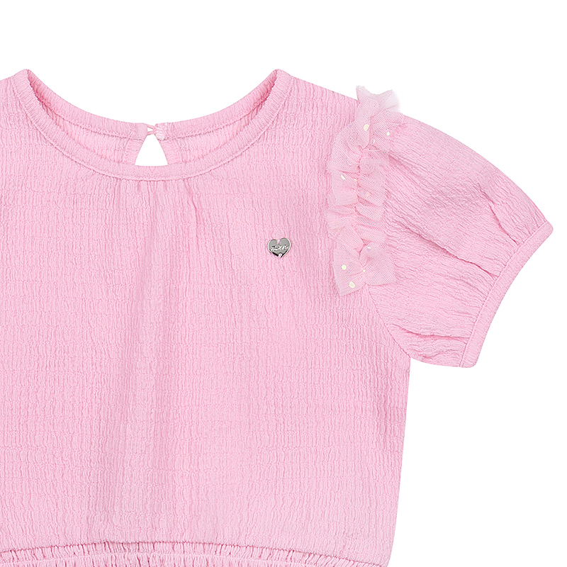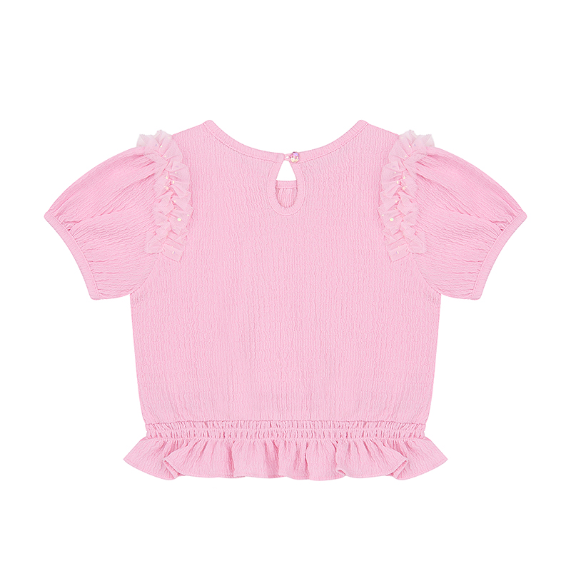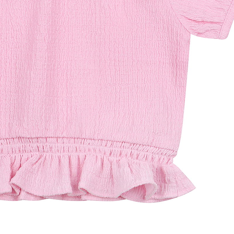 찰랑하고 말랑한 착용감이 좋은 원단에 밑단 프릴과 샤 프릴 장식으로 사랑스러운 TOP 제품 입니다. PK 프릴 요루 PT과 함께 사랑스러운 셋업 연출을 해보세요.
