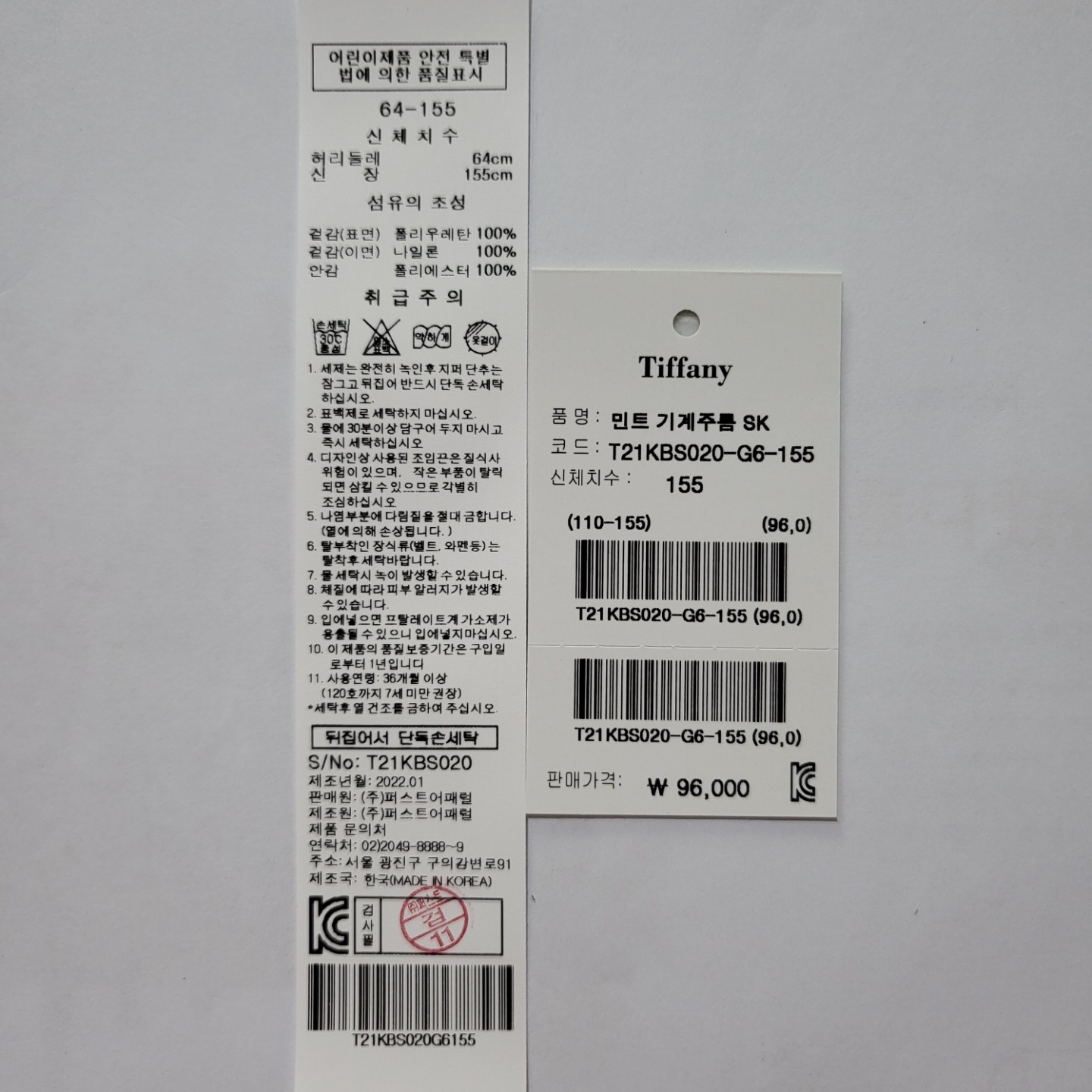 겉감 : 표면 폴리우레탄 100 이면 나일론 100 안감 폴리에스터 100 -