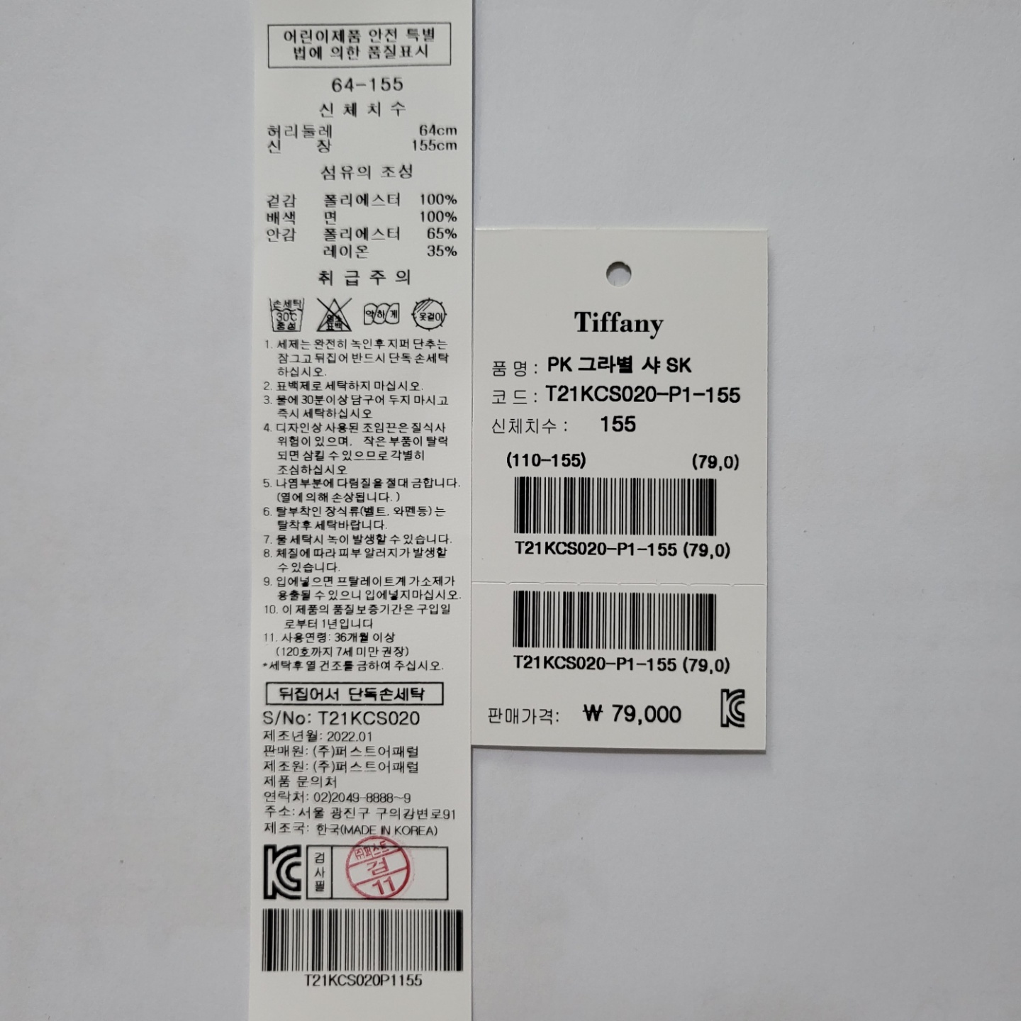 겉감 : 폴리에스터 100 배색 면 100 안감 폴리에스터 65 레이온 35 -