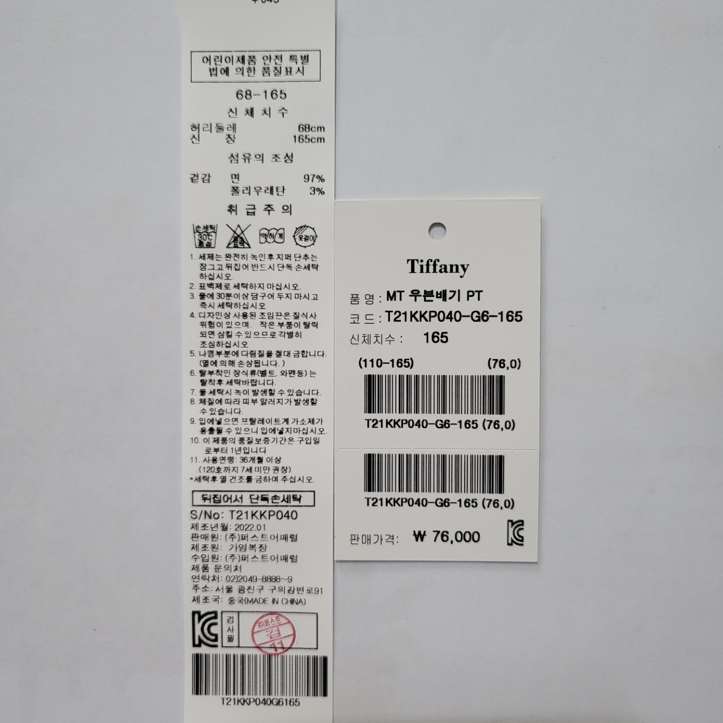 겉감 : 면 97 폴리우레탄 3 -