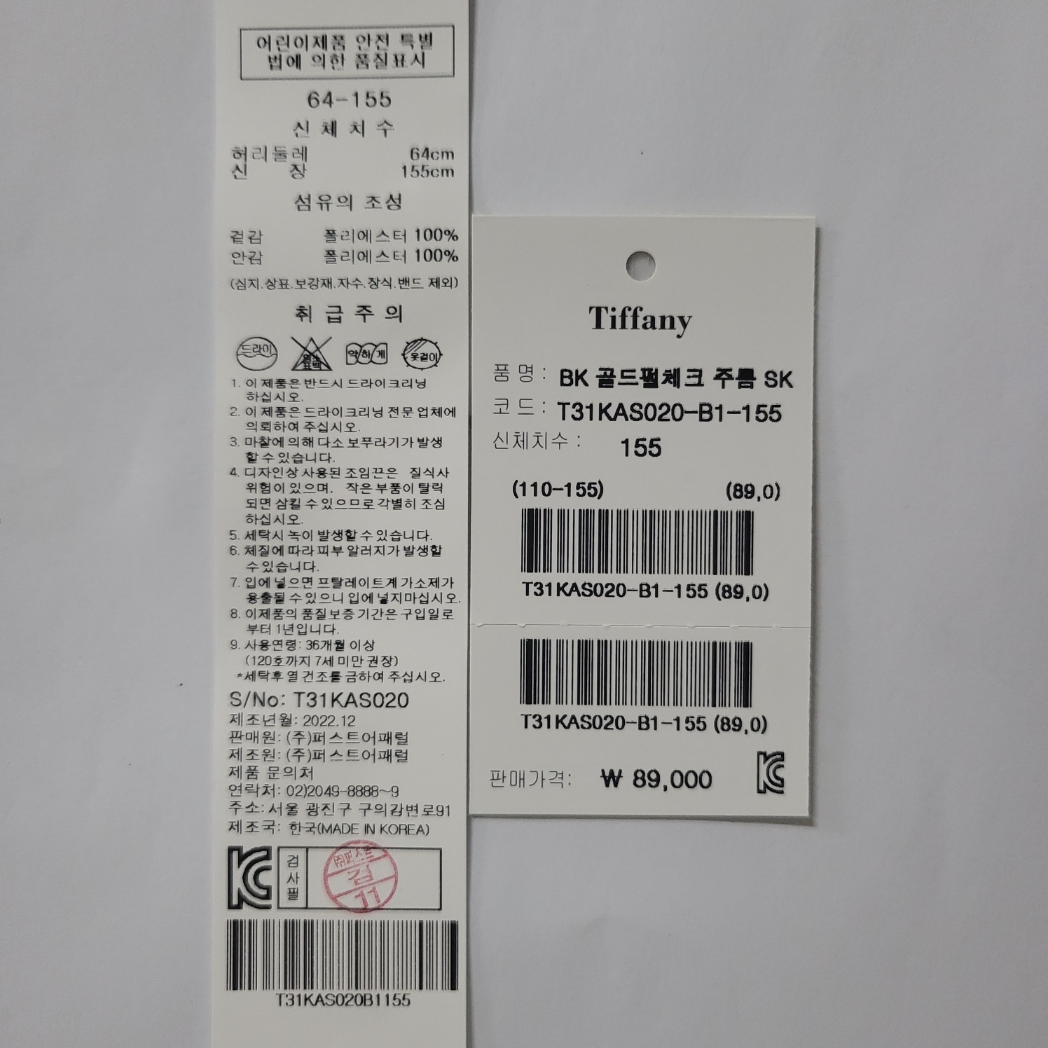 겉감 : 폴리에스터 100 안감 폴리에스터 100 -
