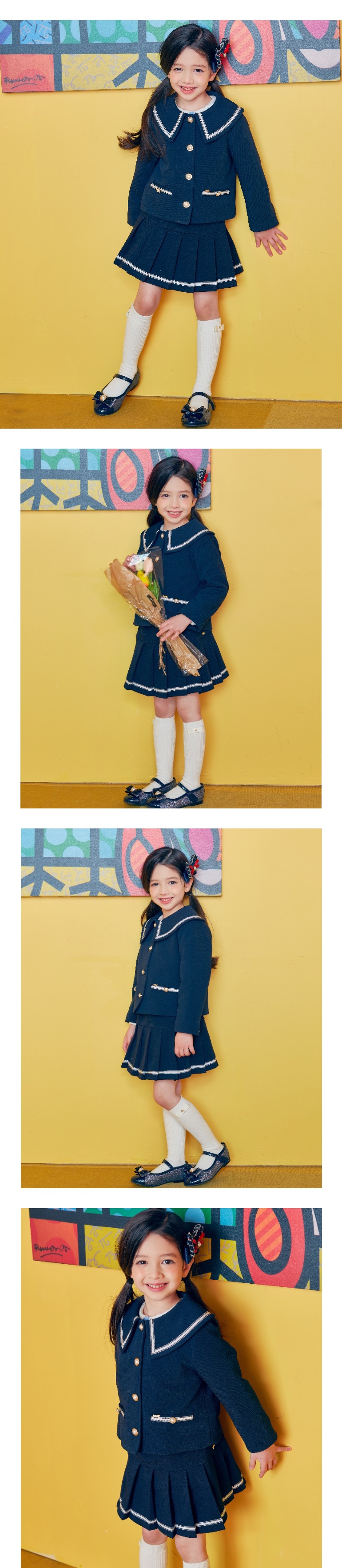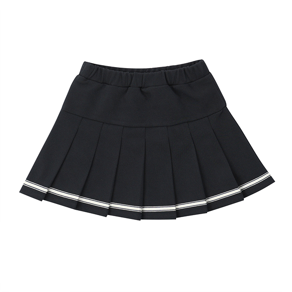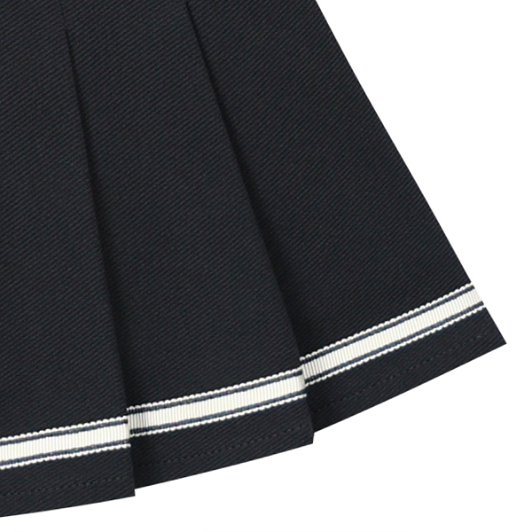 신학기 봄에 착용하기 좋은 네이비 다이마루 주름 스커입니다. 밑단 전체에 배색 테잎을 장식하여 하여 밝아 보이는 스커트입니다. 자켓과 셋트 코디로도 좋고 트위드나 데님 자켓에도 코디가 편한 스커트입니다.