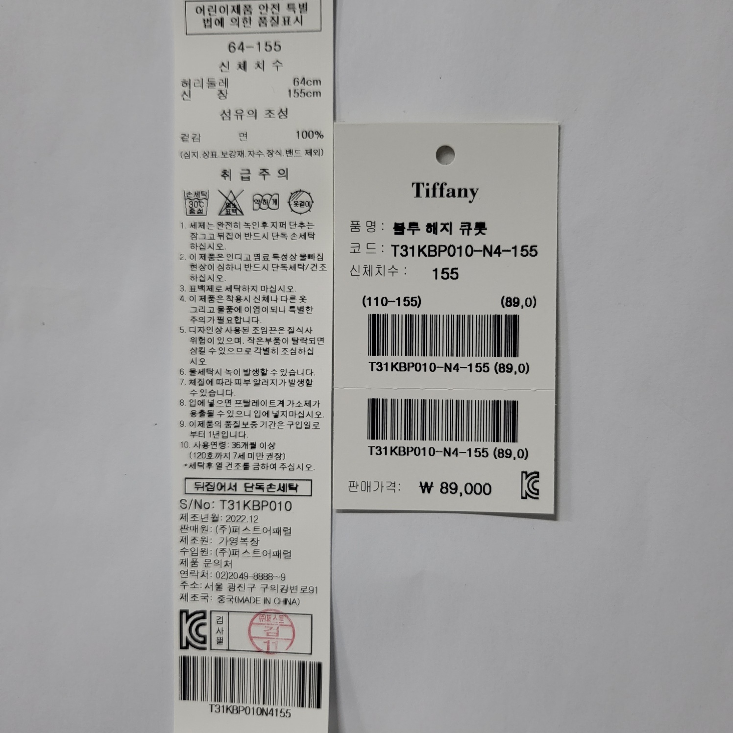 겉감 : 면 100 -