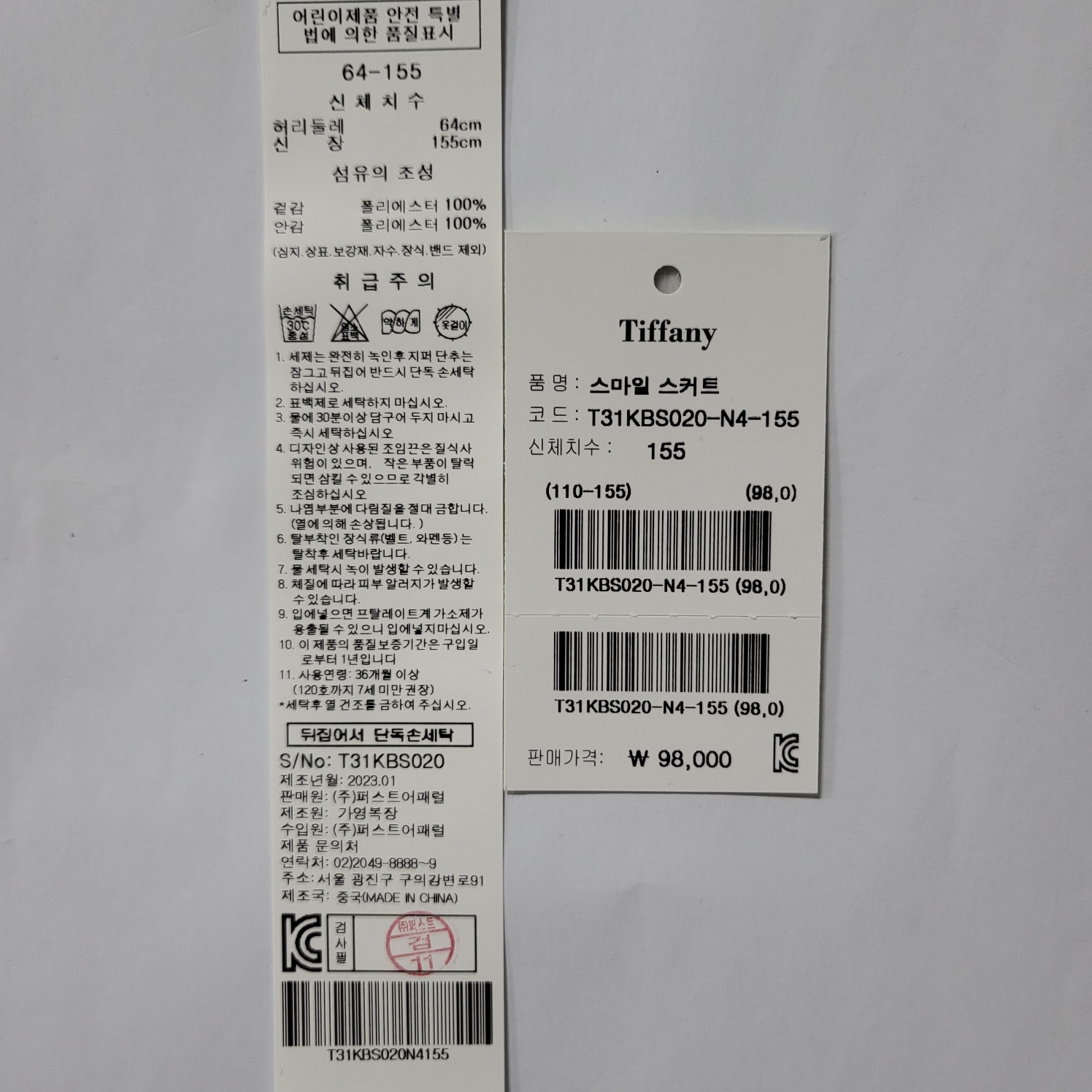 겉감 : 폴리에스터 100 안감 폴리에스터 100 -