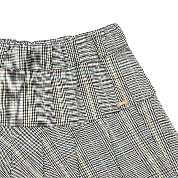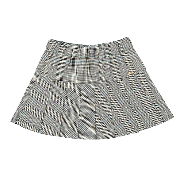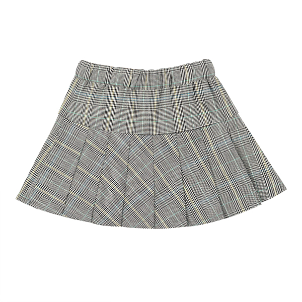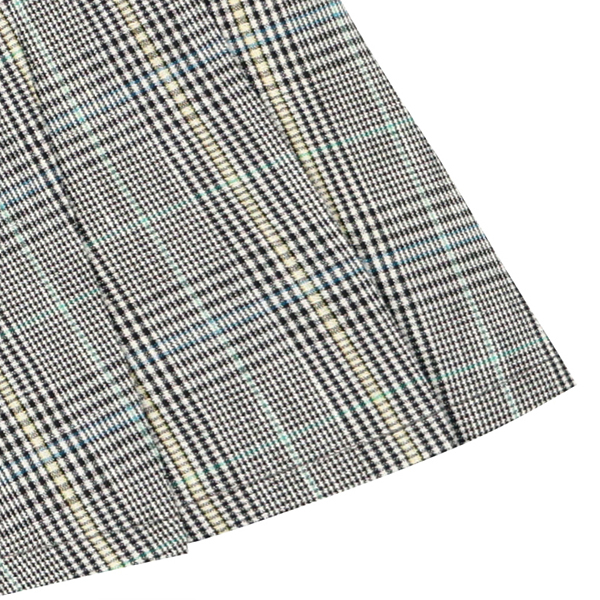 그린과 노랑의 은은한 컬러감의 체크를 믹스하여 포인트를 준 주름스커트로 노랑안감배색이 돋보이틑 아이템으로 니트 가디건 니트조끼와도 코디하면 좋은 아이템이다 .