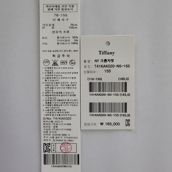 겉감 : 폴리에스터 95 기타지정외 5 안감 폴리에스터 100 -