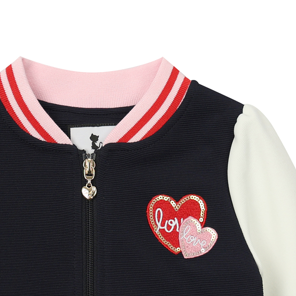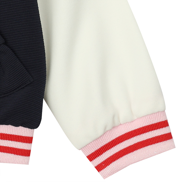 톡톡한 네이비져지원단에과 화이트 원단을 믹스하여 제작한 유니크 점퍼입니다. 핑크와레드색에 포인트 라인이 들어간 시보리로 화사함을 더하고 포인트가 되는 제품입니다.