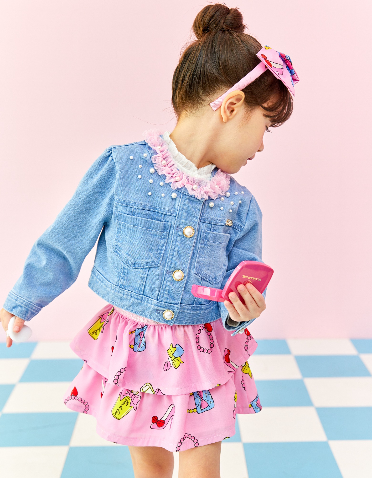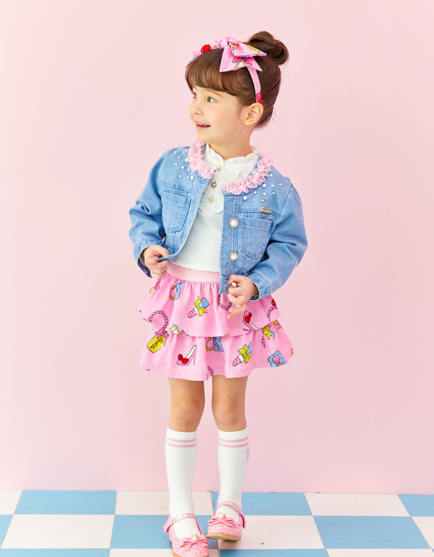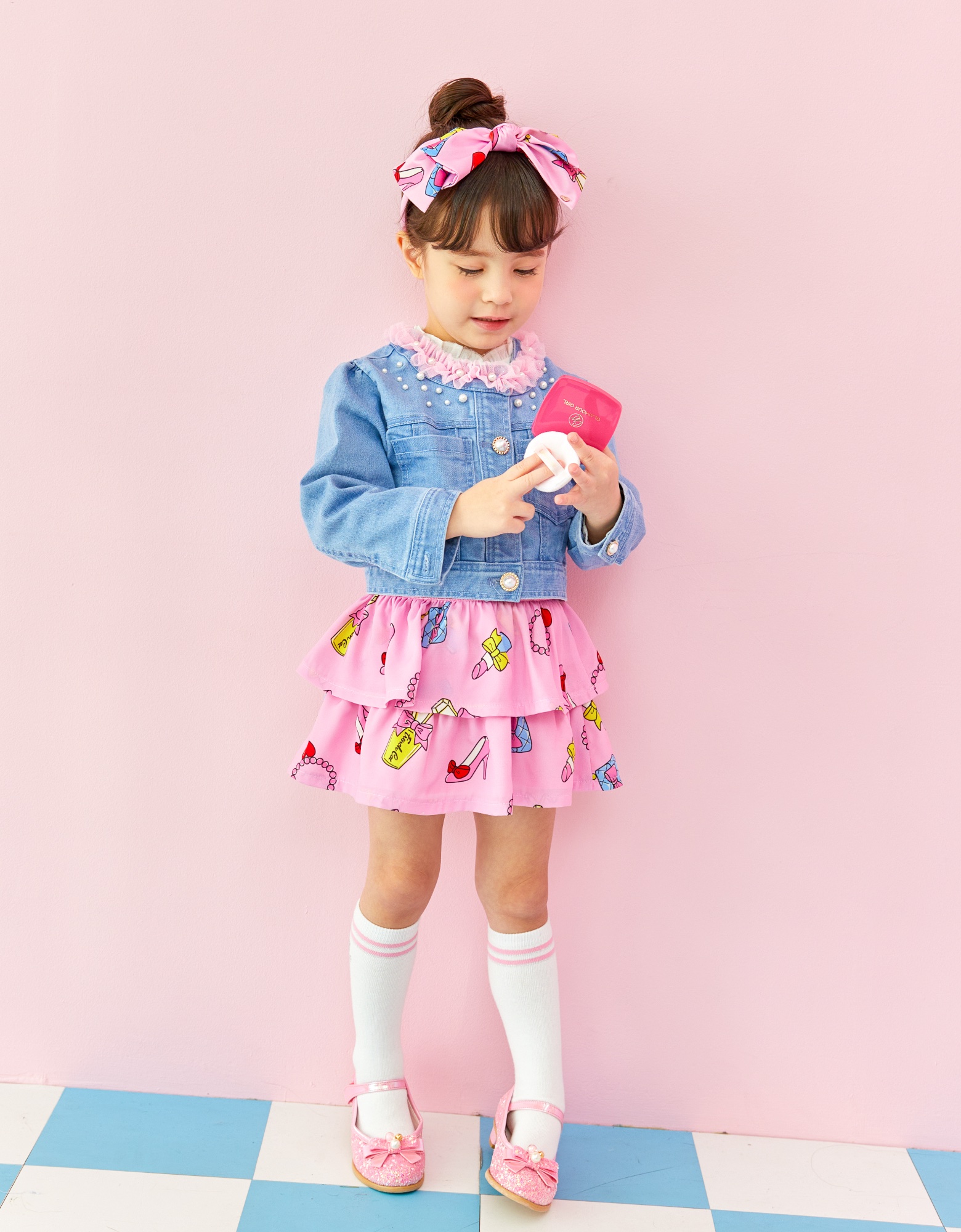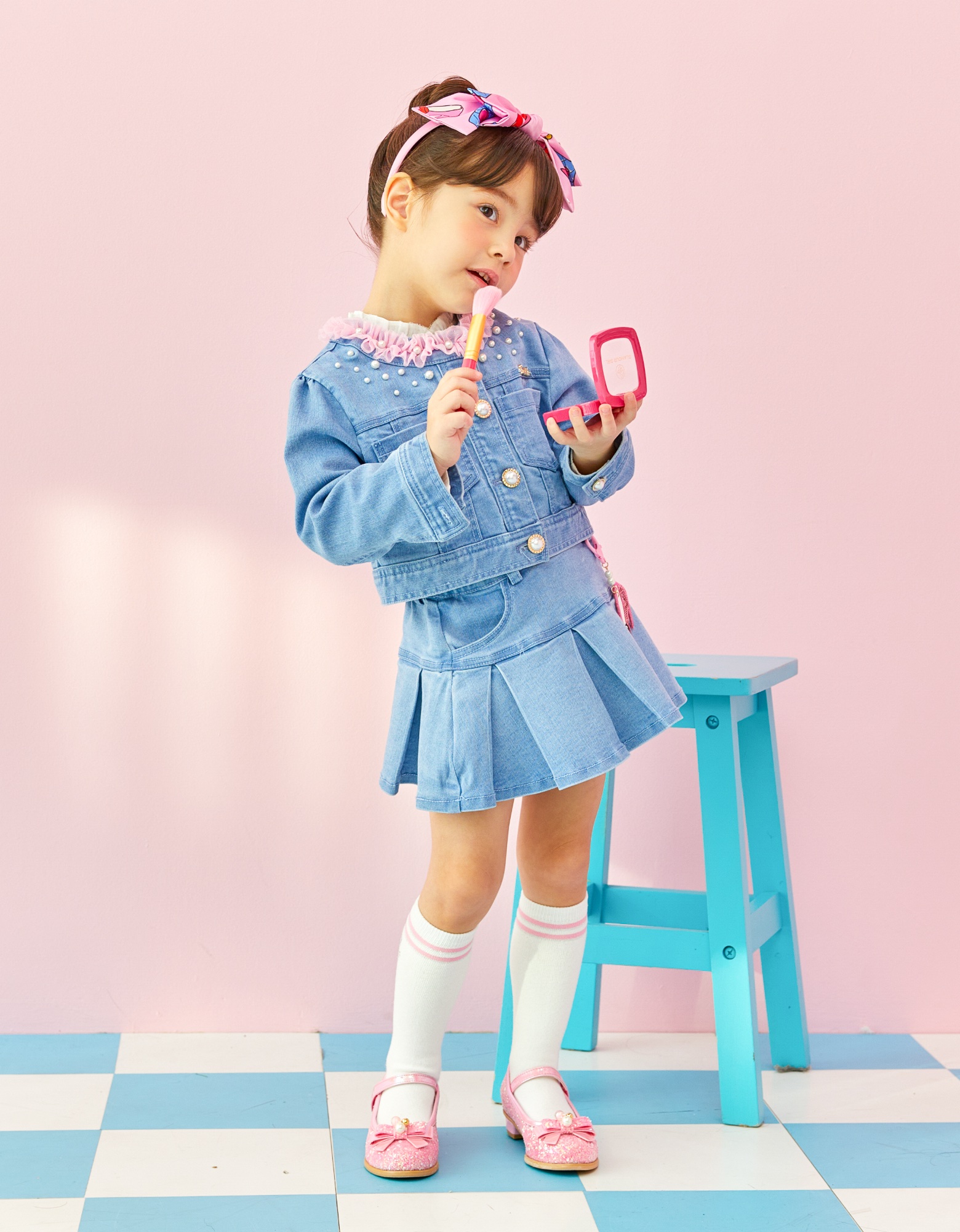 크롭 기장의 스판성 좋은 데님 원단으로 제작되어 트렌디하면서도 활동성을 놓치지 않은 제품으로 샤프릴로 사랑스러움을 더해주고 진주 장식으로 블링함을 더한 제품입니다. 같은 원단의 데님 구두 키링 SK와 PT 아이템으로 레트로 셋업 스타일링을 하거나 PK 샤 SK 나 PK 프린트 SK와 함께 캐주얼하고도 사랑스럽게 스타일링 하기 좋은 제품입니다.