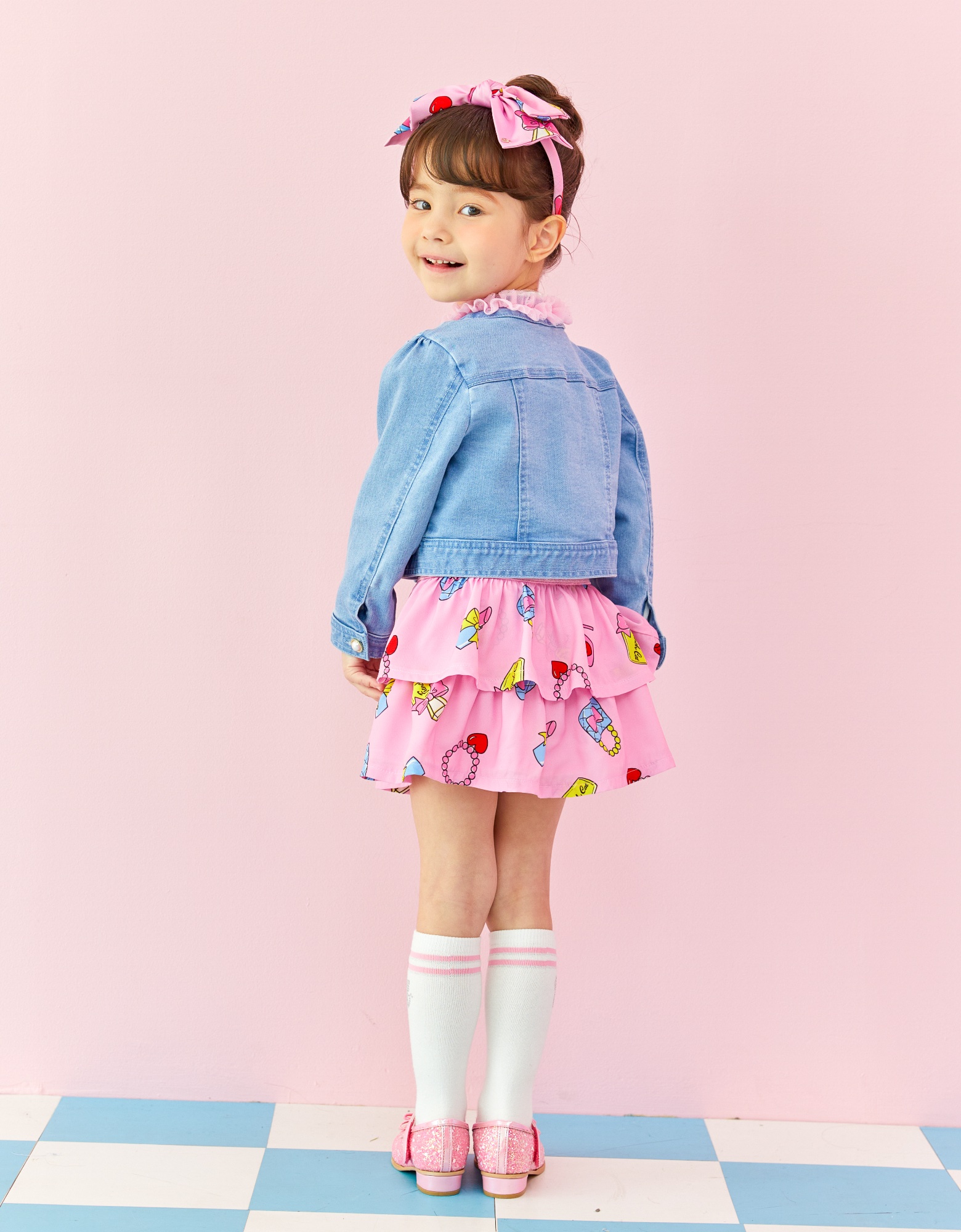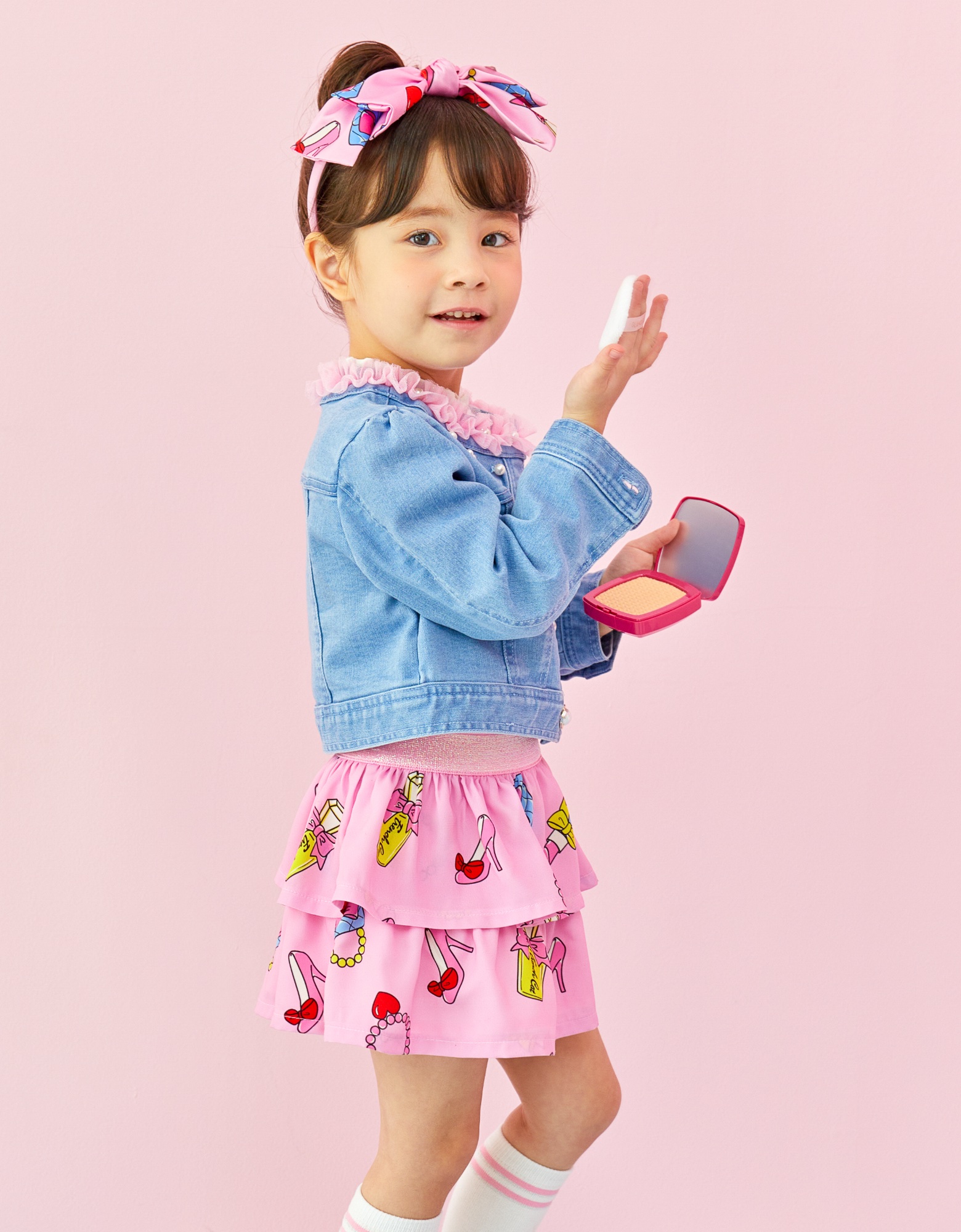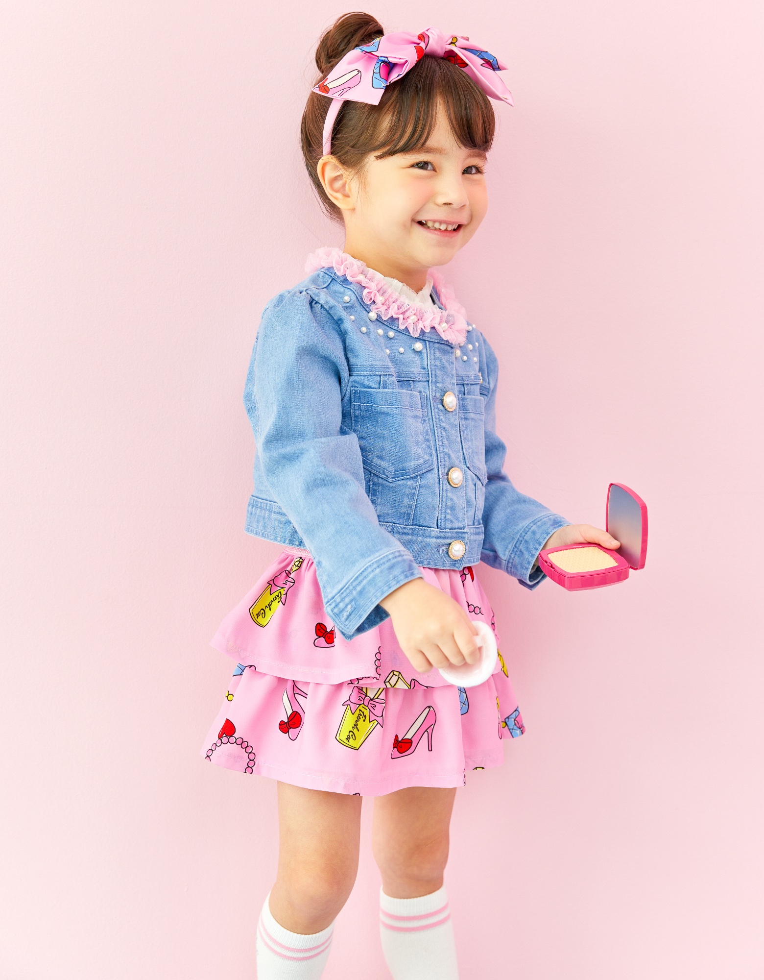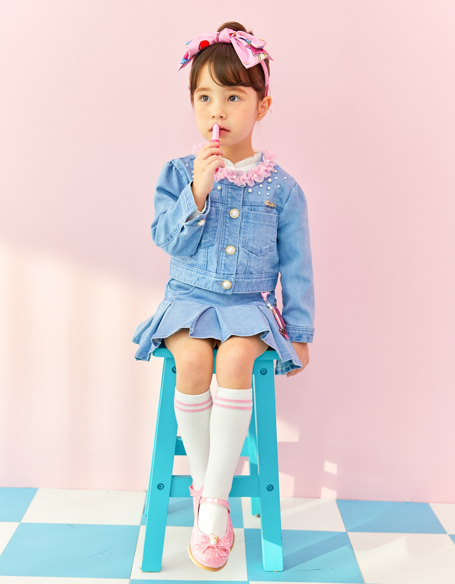 크롭 기장의 스판성 좋은 데님 원단으로 제작되어 트렌디하면서도 활동성을 놓치지 않은 제품으로 샤프릴로 사랑스러움을 더해주고 진주 장식으로 블링함을 더한 제품입니다. 같은 원단의 데님 구두 키링 SK와 PT 아이템으로 레트로 셋업 스타일링을 하거나 PK 샤 SK 나 PK 프린트 SK와 함께 캐주얼하고도 사랑스럽게 스타일링 하기 좋은 제품입니다.