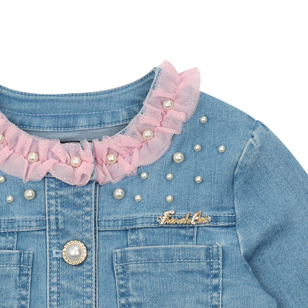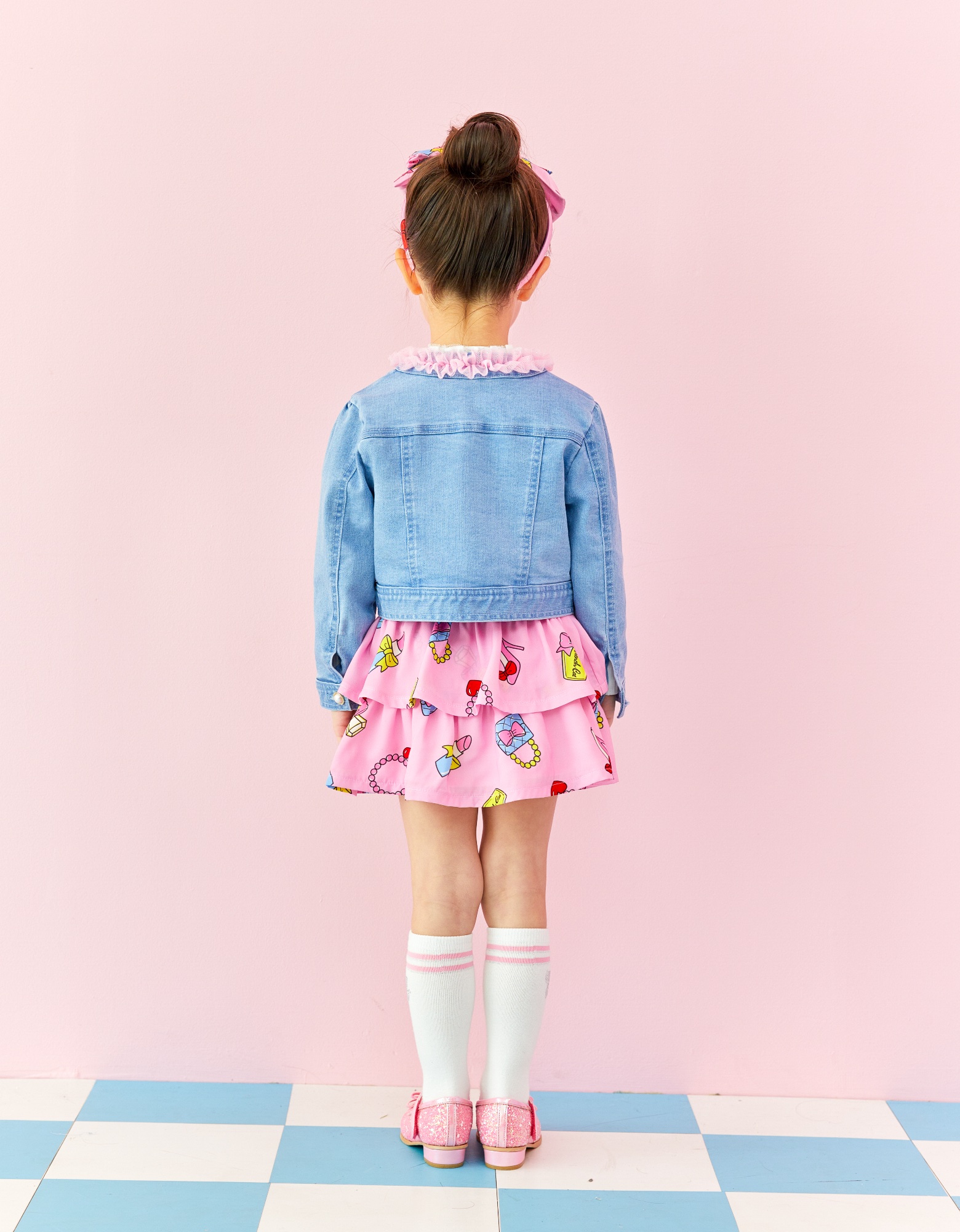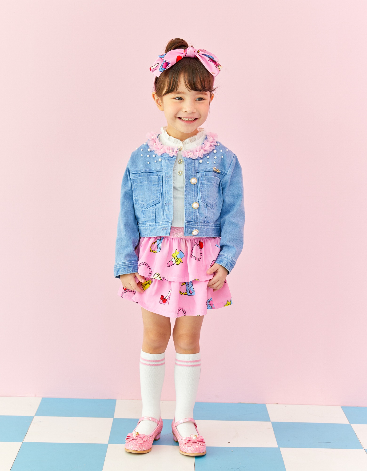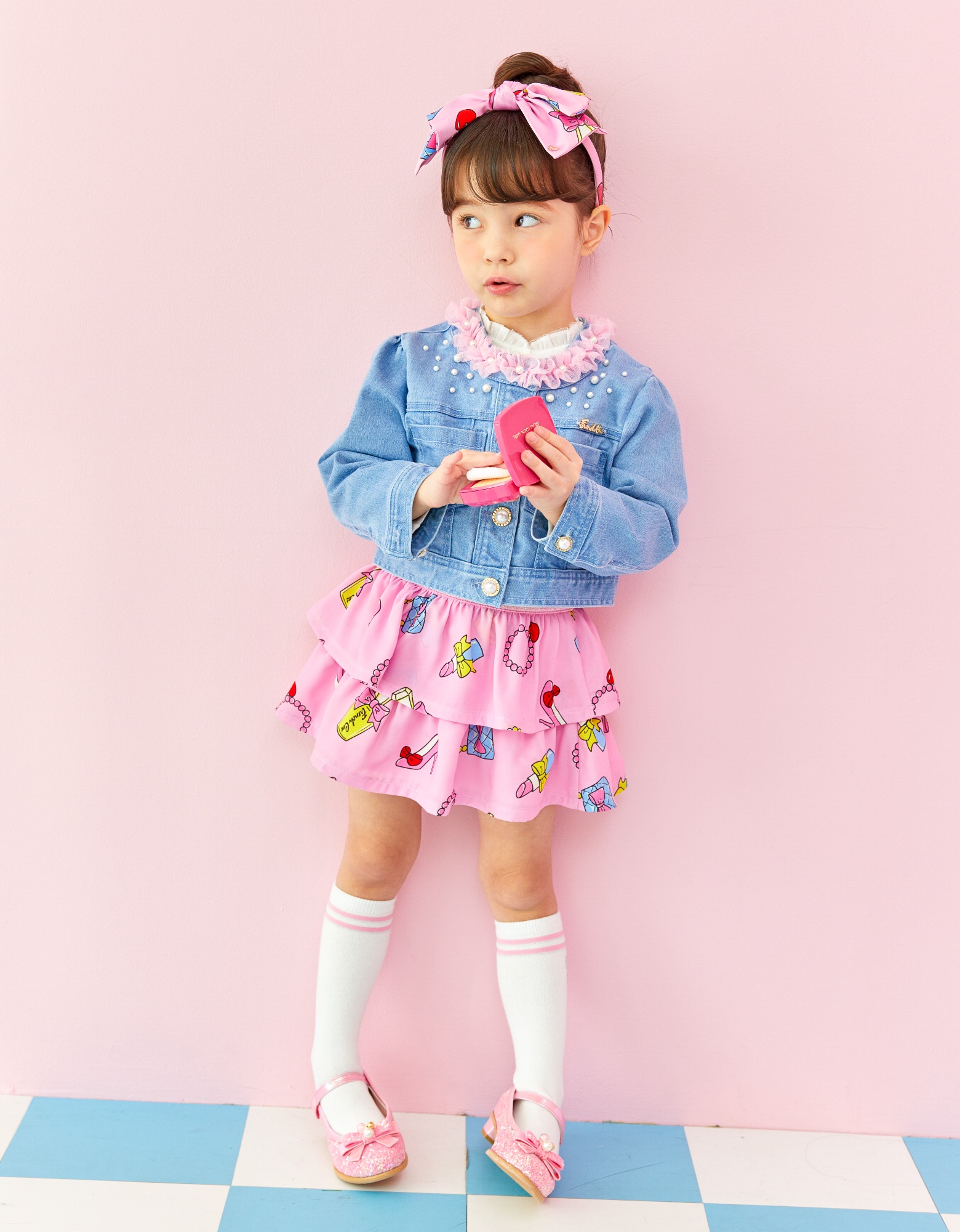 크롭 기장의 스판성 좋은 데님 원단으로 제작되어 트렌디하면서도 활동성을 놓치지 않은 제품으로 샤프릴로 사랑스러움을 더해주고 진주 장식으로 블링함을 더한 제품입니다. 같은 원단의 데님 구두 키링 SK와 PT 아이템으로 레트로 셋업 스타일링을 하거나 PK 샤 SK 나 PK 프린트 SK와 함께 캐주얼하고도 사랑스럽게 스타일링 하기 좋은 제품입니다.