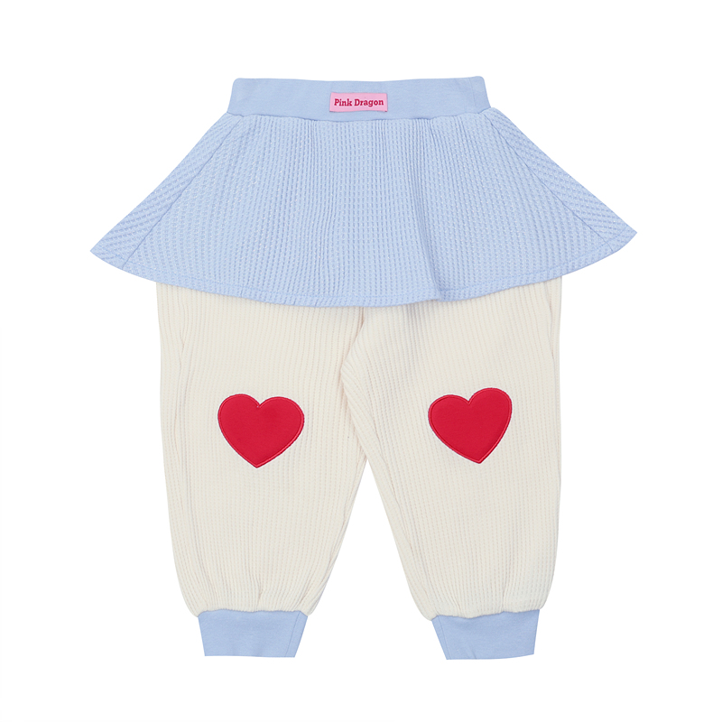 -무릎에 하트 엠보 아플리케 자수로 통통튀는 느낌을 주어 너무 귀여워요.