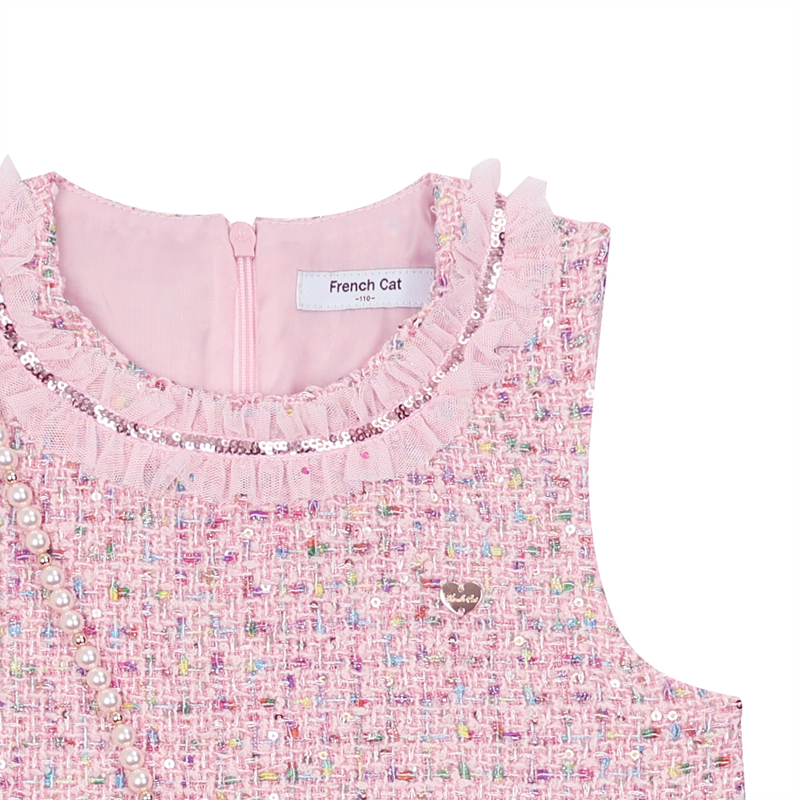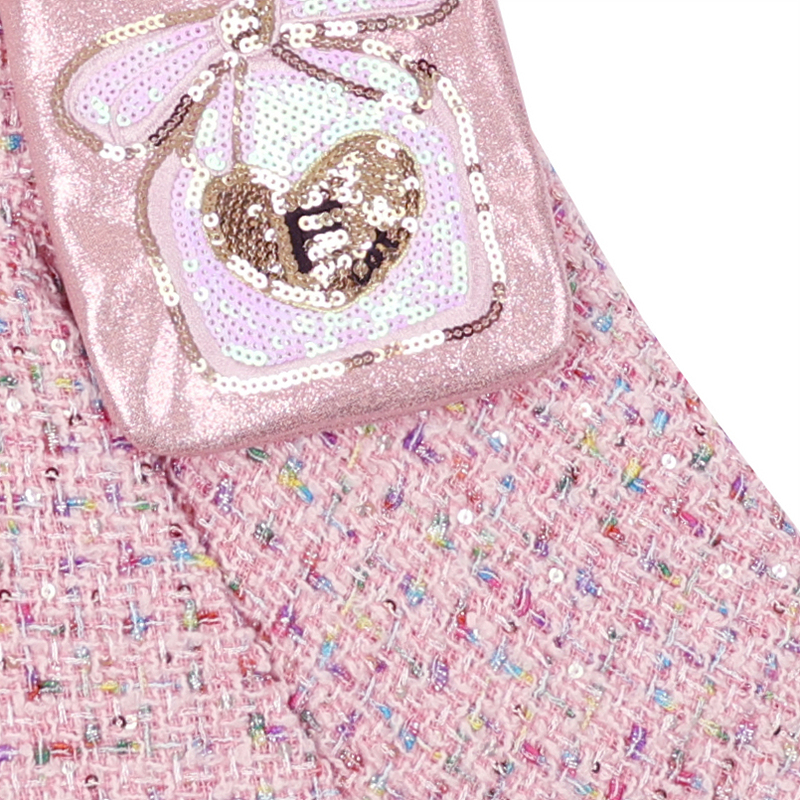 파스텔톤의 알록달록한 핑크 트위드 점퍼 스커트 입니다.