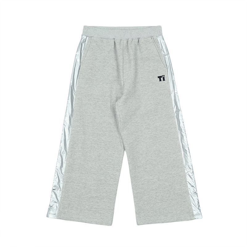 은은한 실버펄사가 들어간 원단으로 제작된 펄멜란 와이드팬츠입니다. 광택감있는 실버화섬을 포인트 배색으로 주어 유니크한 느낌을 줍니다. 같은라인의 T51KBJ040 펄멜란 크롭집업 세트로 착용하면 스포티하면서도 유니크하게 코디가능합니다.