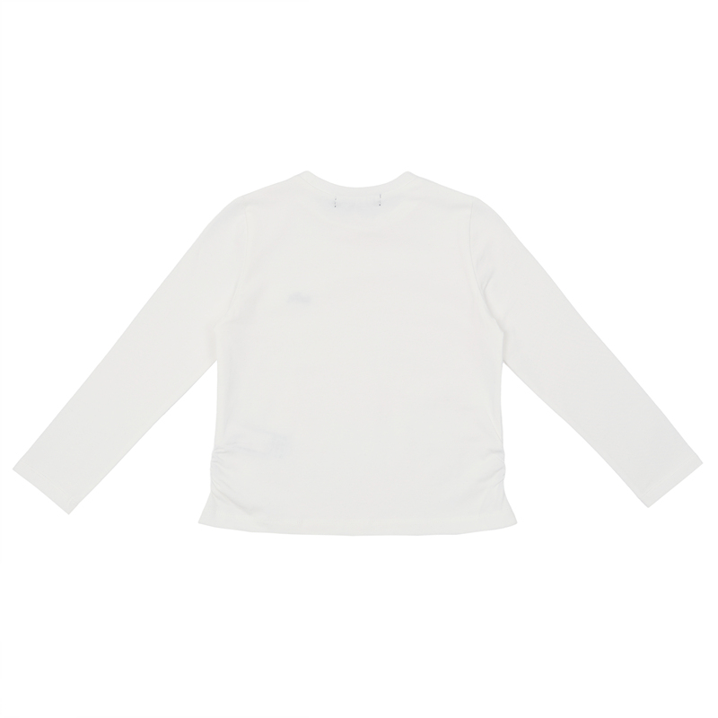 옆선에 고무줄 장식이 들어간 기본 티셔츠 입니다. 아이보리 칼라로 어디에나 함께 매치해서 입기에 좋습니다.