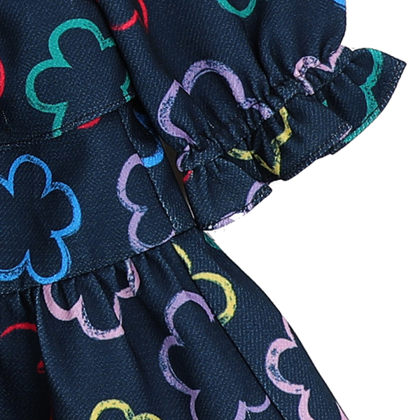 무지개 색감의 멀티 꽃라인 프린트가 전판에 놓여져있는 원피스입니다. 트렌디한 빅카라가 이중으로 배색되어져 유니크함을 더했습니다. 발랄하고 큐트한 연출에 도움을 줄 프렌치캣만의 아이템을 소장해보세요.
