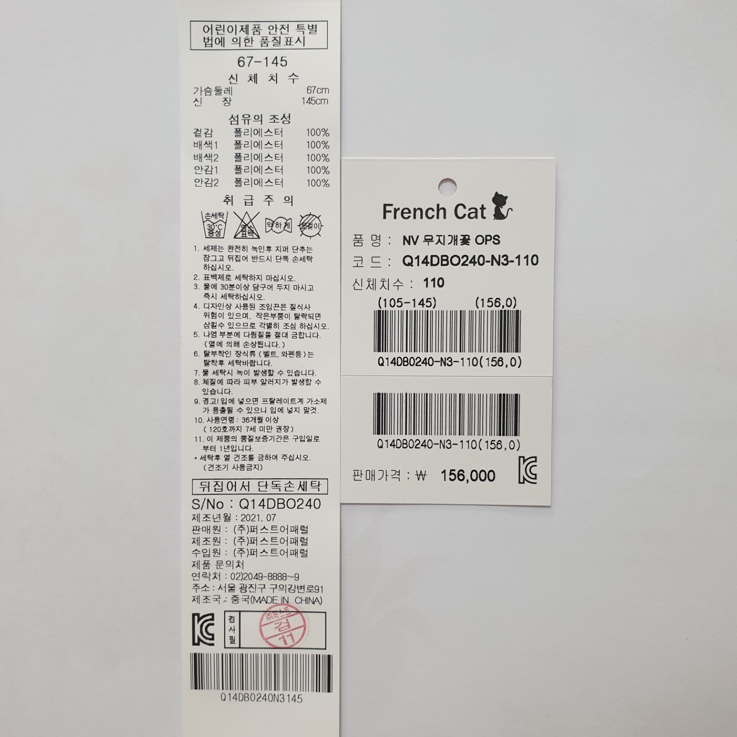 겉감 폴리에스테르100배색1 폴리에스테르100배색2 폴리에스테르100안감1 폴리에스테르100안감2 폴리에스테르100 -