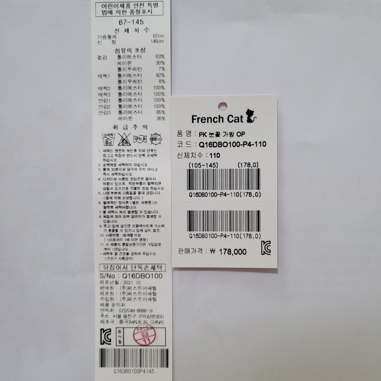 겉감)폴리에스테르 63 레이온30 폴리우레탄7배색1)폴리에스테르92 폴리우레탄8배색2)폴리에스테르100배색3)폴리에스테르100안감1)폴리에스테르100안감2)폴리에스테르100안감3)폴리에스테르65 레이온35 -