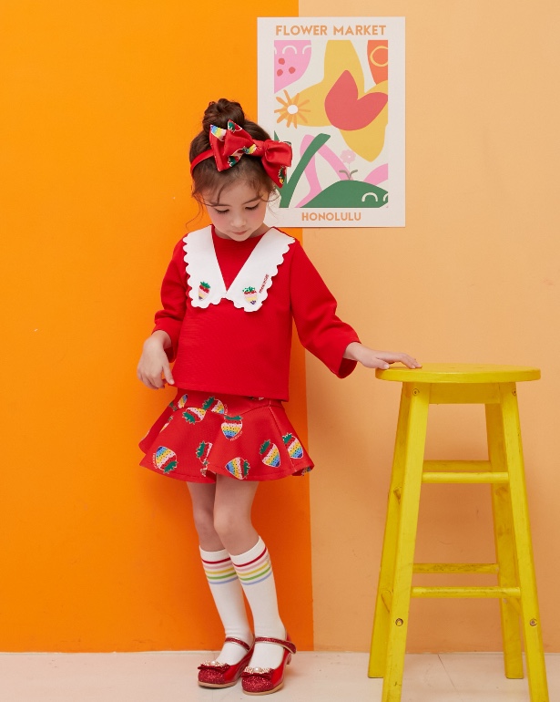 스커는 라인을 스칼럽으로 봉제하여 귀엽게