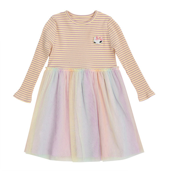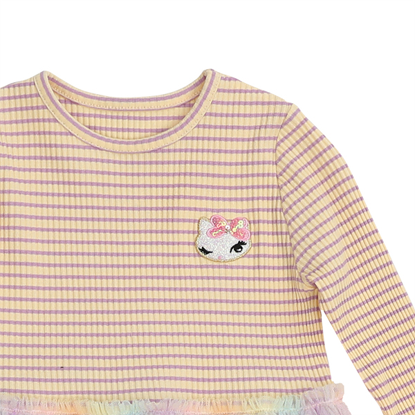 상판은 멀티 스트라이프 골지 원단으로 유니크하면서도 입을 때는 편안하게 입을 수 있습니다.