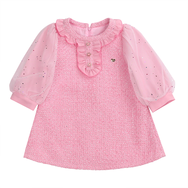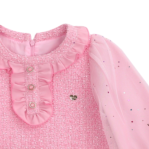 블링블링 핑크 샤가 소매와 앞 장식에 프릴로 배색 처리 되어 있습니다.