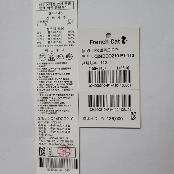 겉감 : 폴리에스테르 100%배색1: 폴리에스테르 100%배색2: 폴리에스테르 100% 안감: 폴리에스테르 100% -