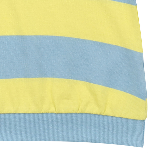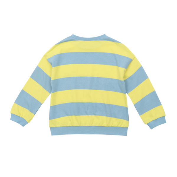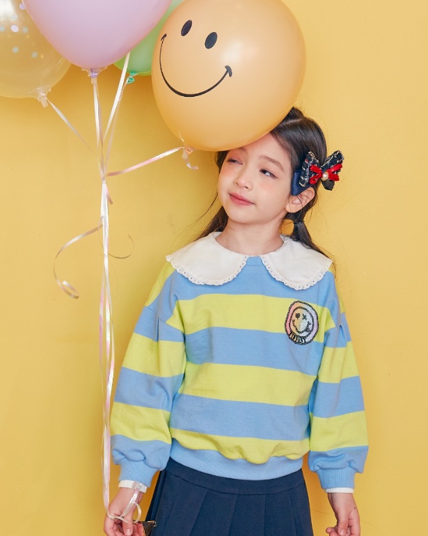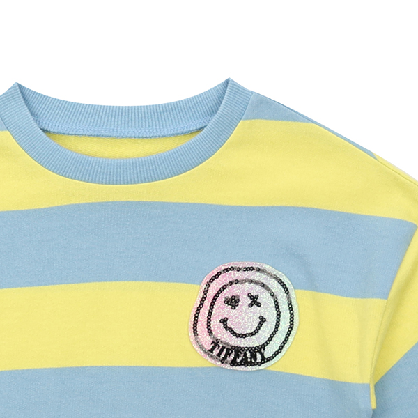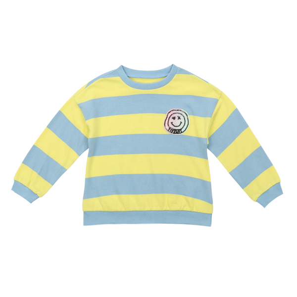 블루 &옐로우 패턴의 스트라이프 맨투맨으로 가슴에 반짝이스마일와펜이 포인트인 아이템입니다.