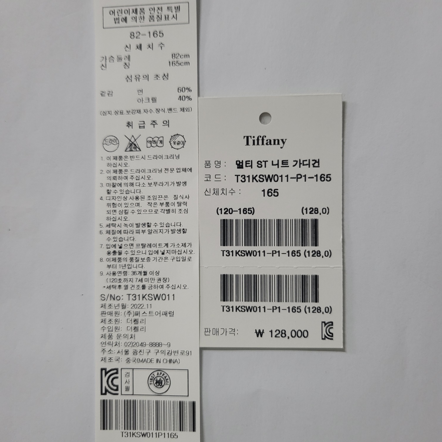 겉감 : 면 60 아크릴 40 -