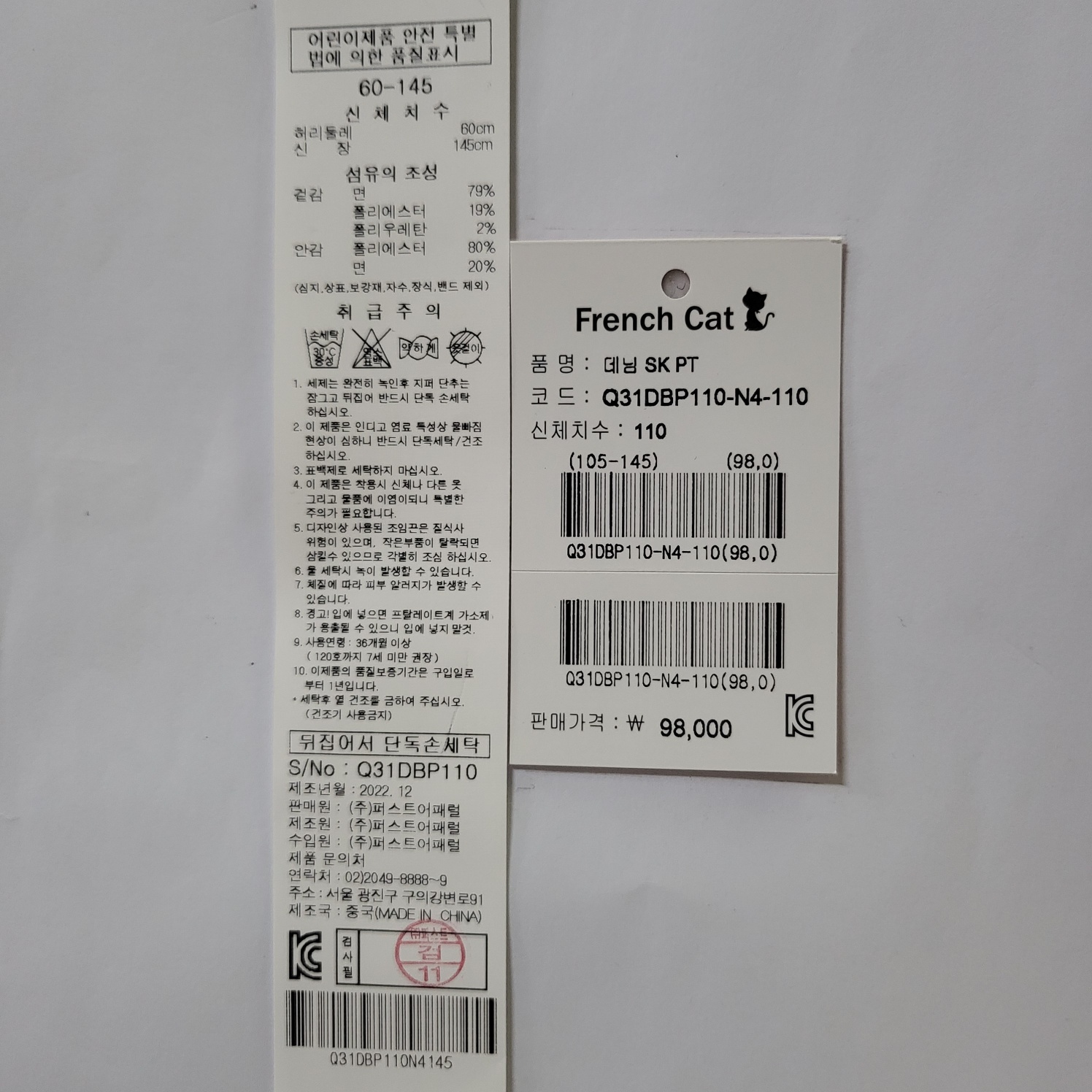 겉감 면79 / 폴리에스테르19 / 폴리우레탄2안감 폴리에스테르80 / 면20 -
