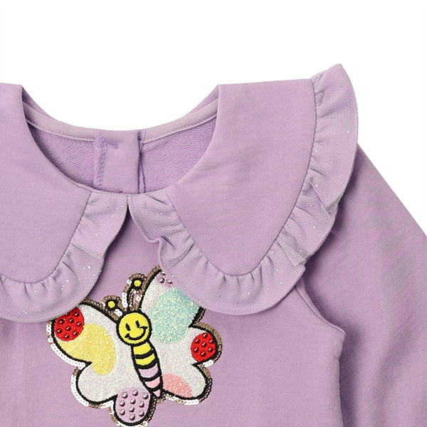 빅카라 끝에 제감과 펄샤 이중 프릴이 포인트가 되는 얇은 쮸리 원단의 MTM 제품입니다. 연보라 색상으로 프렌치캣의 연보라 계열의 스커트나 데님 스커트 팬츠와 울릴 제품입니다. 앞판에 커다란 멀티 도트 나비 모티브가 포인트가 되는 제품입니다.